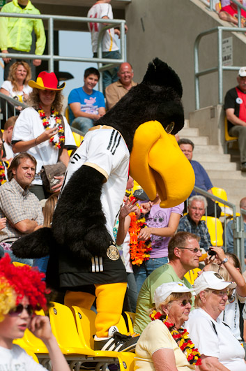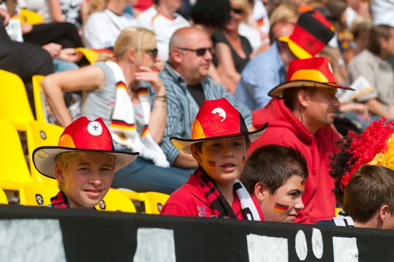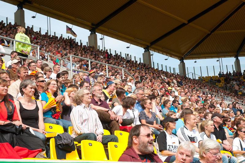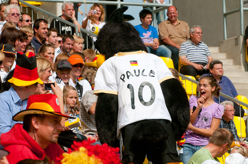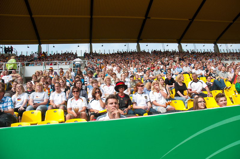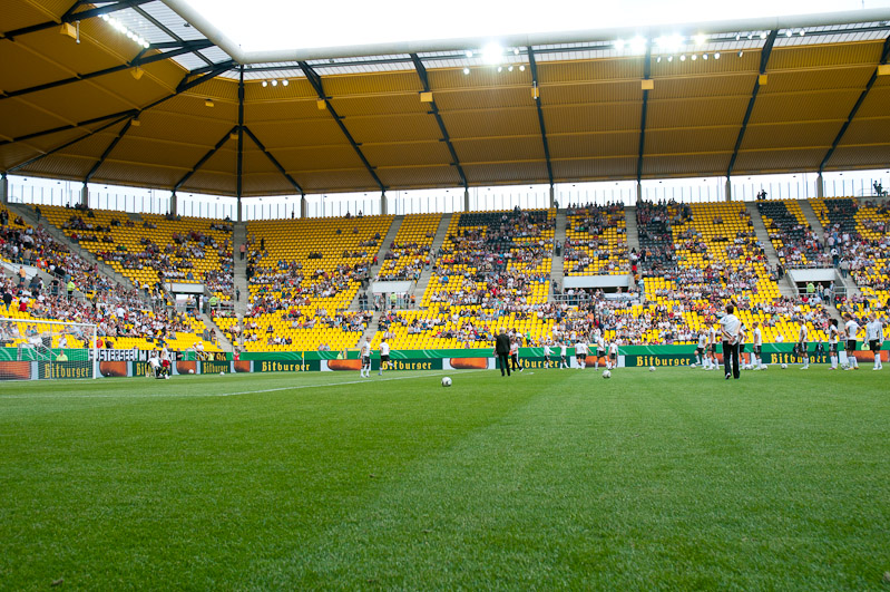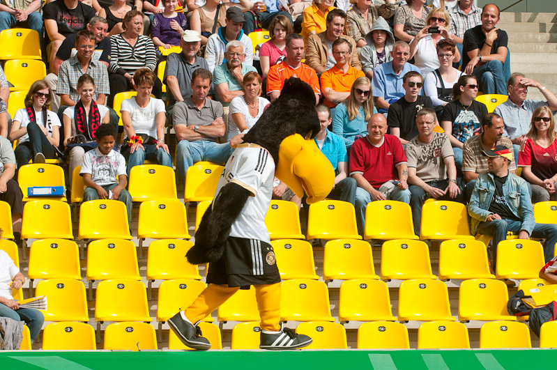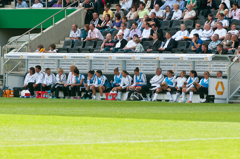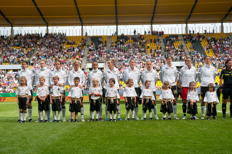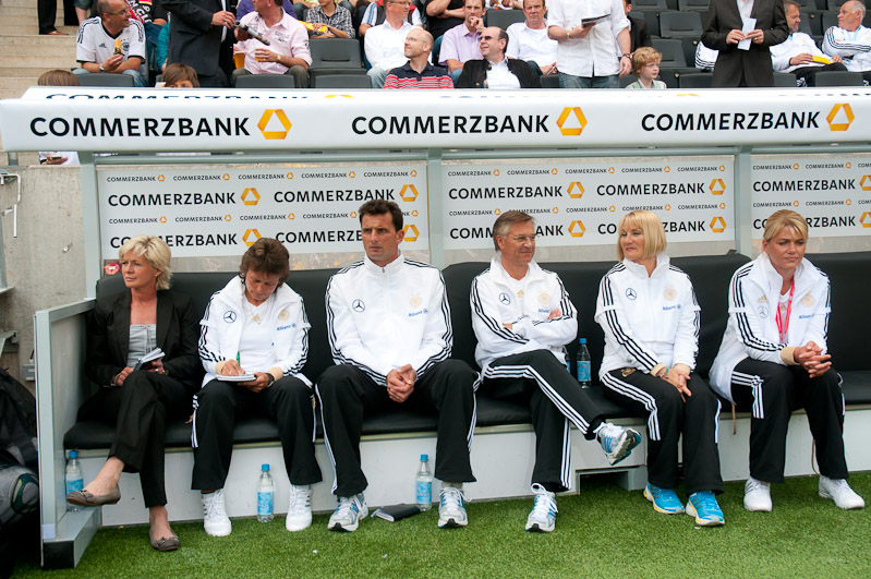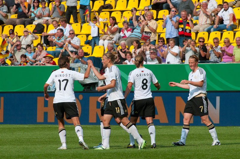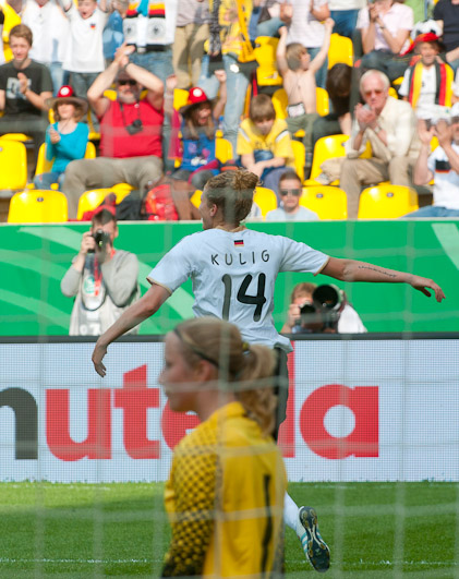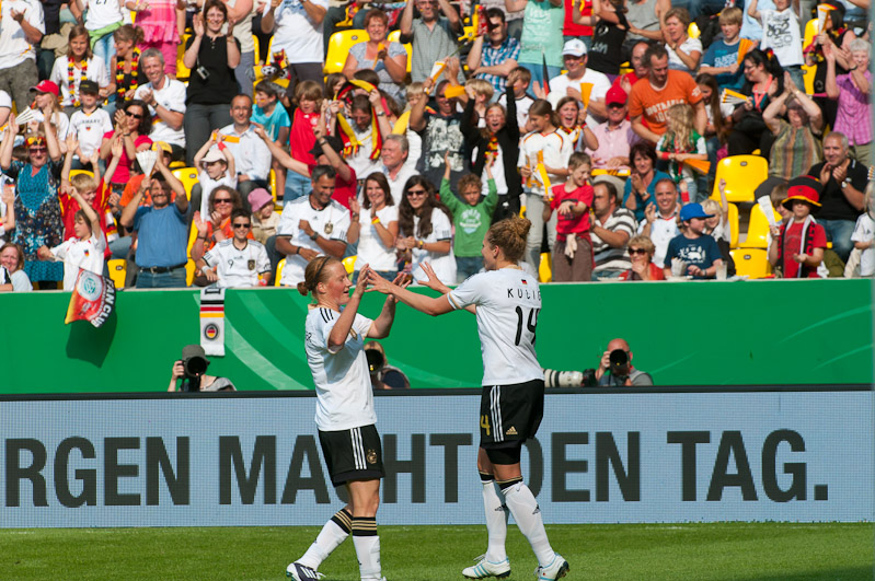 Vier Minuten später erhöhte die starke Kim Kulig auf 4:0. Wie eine Flipperkugel sprang der Ball vor dem Tor hin und her, ehe die 21-Jährige dem Spiel mit einem satten Rechtsschuss ein Ende setzte. Okoyino da Mbabi, auffälligste Deutsche, machte in der Schlussviertelstunde Platz für Martina Müller. Für den Schlusspunkt sorgte Inka Grings mit einem direkt verwandelten Freistoß aus 18 Metern (87.) – das deutsche Team scheint für die WM im eigenen Lande bestens gerüstet zu sein. Und der Aachener Tivoli hat erneut eindrucksvoll unter Beweis gestellt, dass er ein gutes Pflaster für Länderspiele des DFB ist.