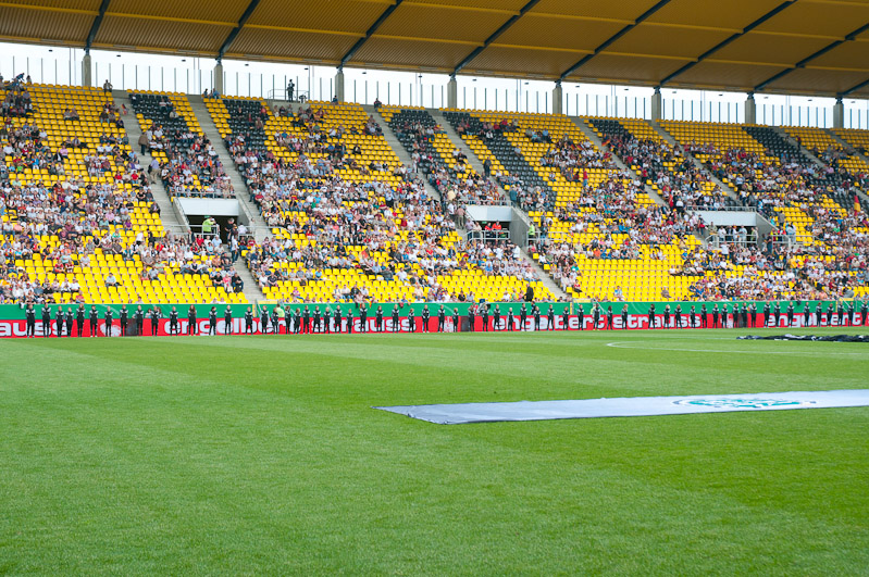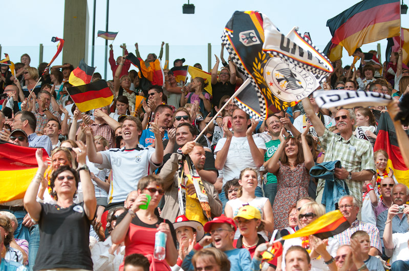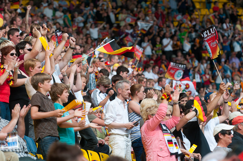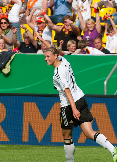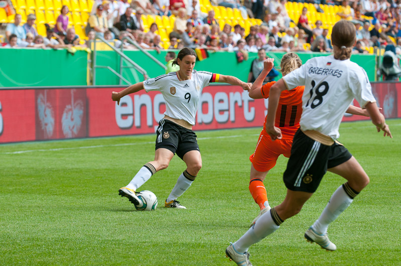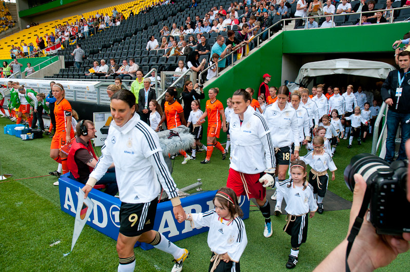 Mit Melanie Behringer, Inka Grings, Alexandra Popp und Lena Goeßling für Prinz, Garefrekes, Bajramaj und Krahn ging das DFB-Team in die zweiten 45 Minuten. Am Spielverlauf änderte sich nichts: Die Damen in Schwarz-Weiß bestimmten das Spiel, spätestens an der Mittellinie war Oranje die Kugel wieder los. Nach 62 Minuten ersetzte Ariane Hingst die sehr lauffreudige Torschützin Laudehr. Weil das Spiel Mitte von Halbzeit 2 wenig bot, unterhielt sich das Publikum mit „La Ola“ kurzerhand selbst. Die „jungen Wilden“ lenkten den Blick der Fans schnell wieder aufs Feld: Kulig auf Popp, und mit einem krachenden Linksschuss markierte die Duisburgerin das 3:0 (71.).
