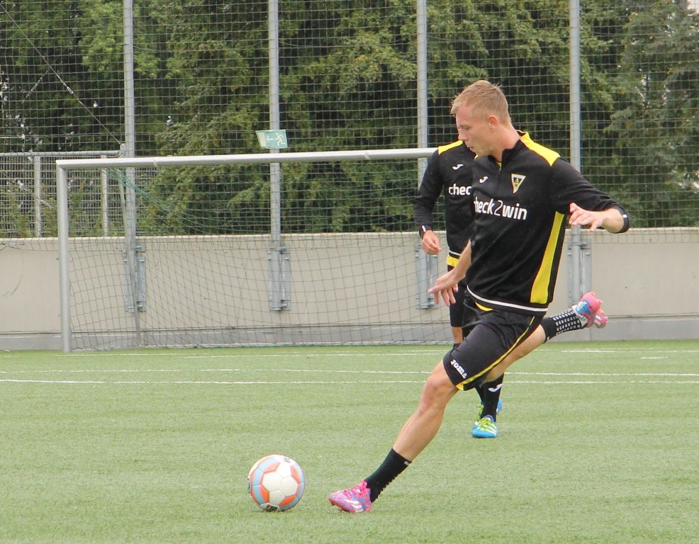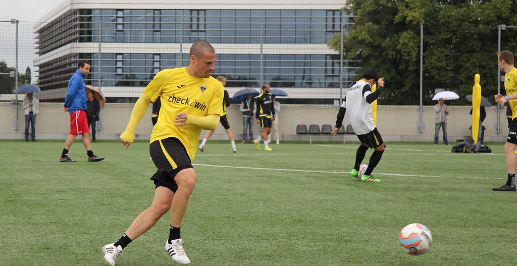 Regenschauer über´m Tivoli: Aufgrund der Regenfälle musste Fuat Kilic mit seiner Mannschaft den Untergrund wechseln. Der Rasenplatz wurde geschont, das Team stieg die Treppen auf das Parkhausdach hoch und absolvierte die Mittwochseinheit auf den Kunstrasenplätzen.