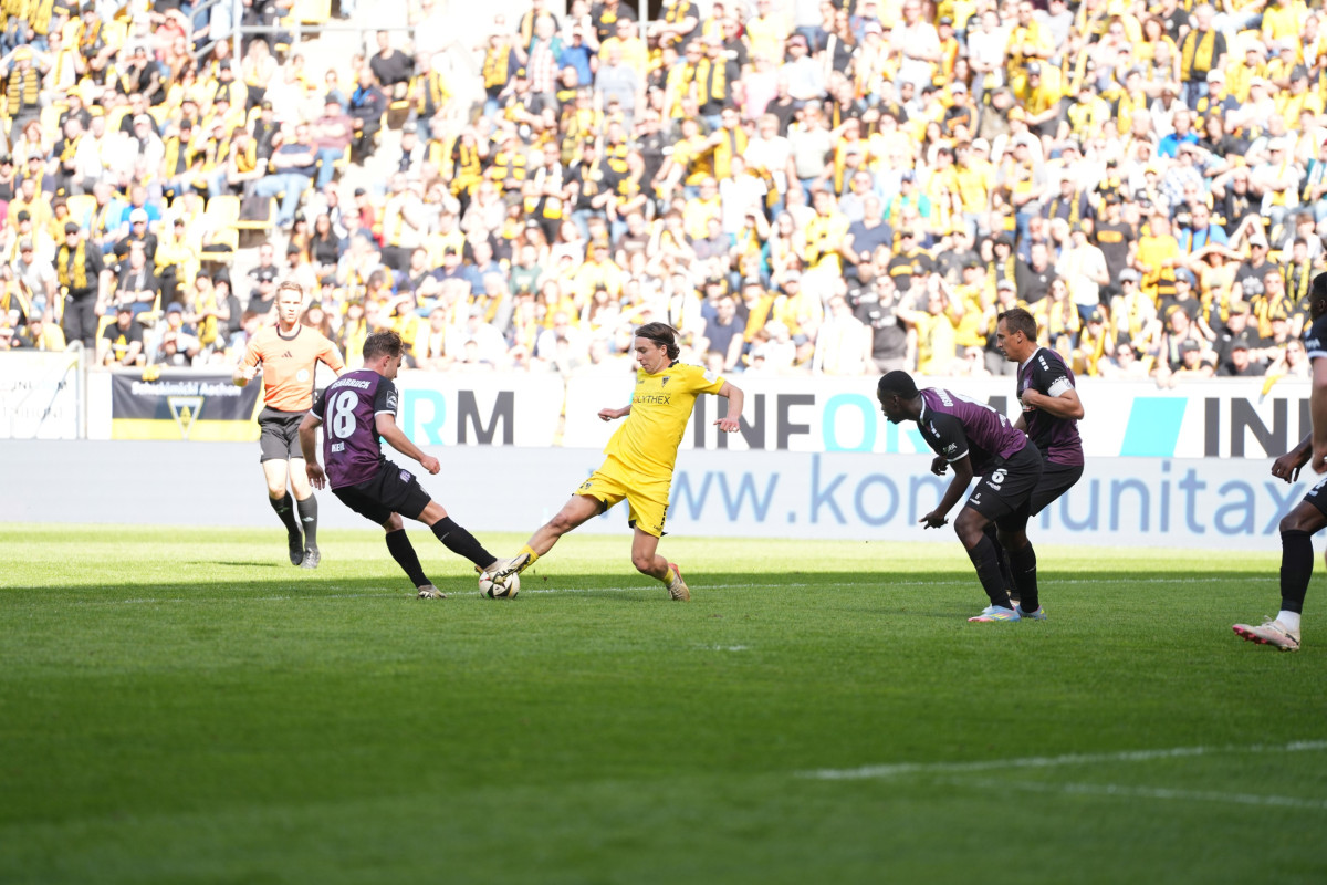 Kapitän Mika Hanraths brachte die Fans nach gut einer halben Stunde zum Toben. Nach einem Freistoß köpfte er den Ball präzise rechts unten ins Tor – hinter dem Gehäuse explodierte die Werner-Fuchs-Tribüne vor Freude. Chancen, vor der Pause nachzulegen, vergaben Anas Bakhat und Bentley Baxter Bahn. In der zweiten Halbzeit mussten die Alemannen leiden: Der VfL drückte auf den Ausgleich, doch die Aachener Abwehr hielt stand. Am Ende stand der Heimsieg und damit der vorletzte Schritt auf dem Weg zum Ligaverbleib.