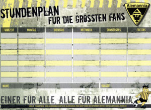 Ab sofort können sich alle Schulkinder einen schwarz-gelben Stundenplan im Fanshop an der Krefelder Straße, im Cityfanshop in der Pontstraße oder in der Geschäftsstelle im Sonnenweg abholen. Al-Aix wünscht viel Spaß mit dem Planen der Woche und hofft auf viele gute Noten für das nächste Halbjahrszeugnis.