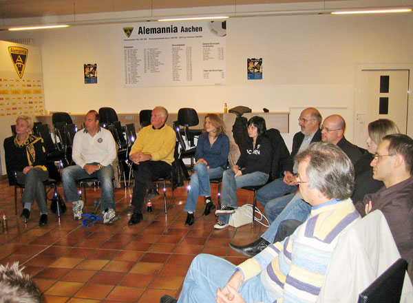 Am Schluss der Gesprächsrunde fragten die Mitglieder nach seiner persönlichen Einstellung zum Verein, den Fans und der Stadt. „Als ich mit Fürth um den Aufstieg mitspielte, kamen an einem Spitzenspiel an einem Freitagabend gerade mal 5000 Zuschauer. Hier ist immer die Hölle los!“ schwärmte er von der Atmosphäre im Stadion. „Bei meinem ersten Heimspiel gegen den KSC letzte Saison habe ich beim Einlaufen durch den Spielertunnel sofort gewusst, dass ich hier richtig bin“, antwortete er auf die Frage ob er auch wegen der Stimmung nach Aachen gekommen sei.