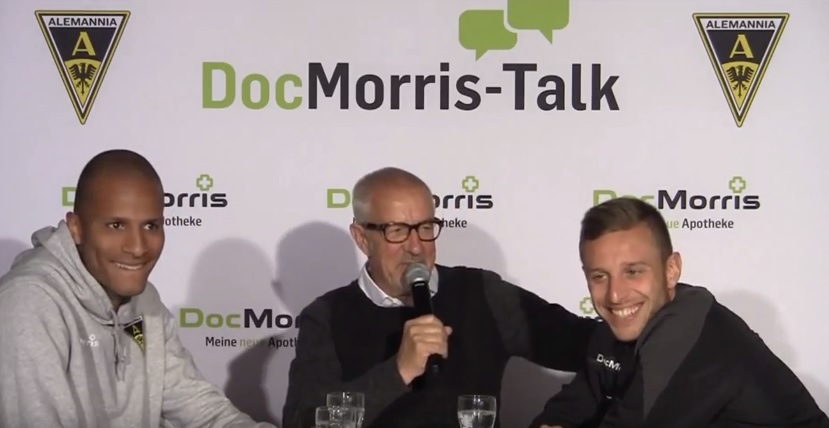 Jerome Propheter und David Vrzogic waren nach dem 2:0-Erfolg über Rot-Weiss Essen beim DocMorris-Talk im Business-Bereich zu Gast.