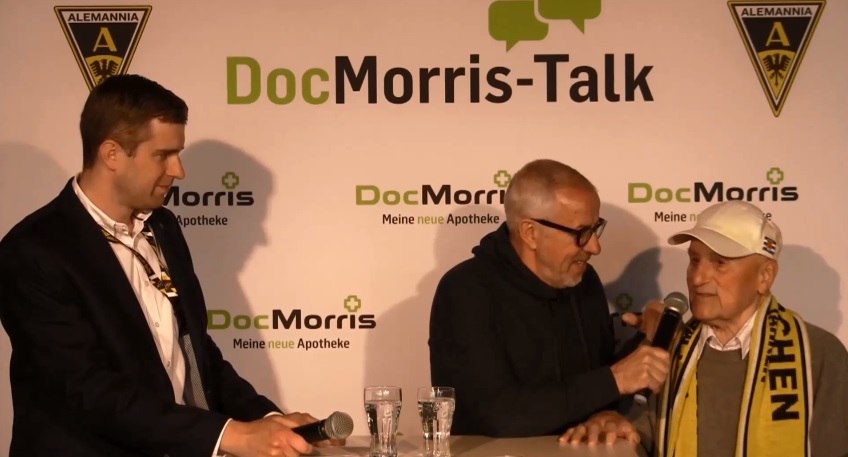Unmittelbar nach dem letzten Saisonheimspiel gegen Viktoria Köln waren Alemannia-Geschäftsführer Timo Skrzypski und Jupp Bonnie. Bonnie spielte in den vierziger Jahren für die Alemannia und wurde in der vergangenen Woche stolze 95 Jahre alt.