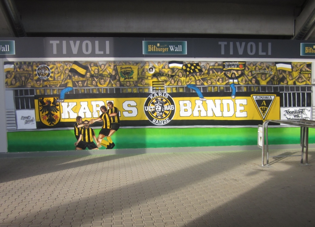 Umgesetzt wurde der Entwurf der Karlsbande vom Künstler Andi Ponto (DAC Crew / www.dac-crew.com / info@dac-crew.com) unter Einsatz von sowohl Sprühdose als auch Airbrush. Mehrere weitere Fanclubs haben Entwürfe in Planung, die demnächst umgesetzt werden sollen. Koordiniert wird das ganze von der Stadionarbeitsgruppe, in der Fanvertreter mit Geschäftsführer und Leiter Stadionbetrieb über Themen rund um den Tivoli beraten. Für Rückfragen steht der Sprecher der Gruppe Boris Gillessen unter der Adresse stadiongruppe@alemannia-aachen.de zur Verfügung.