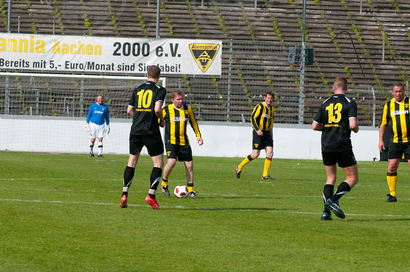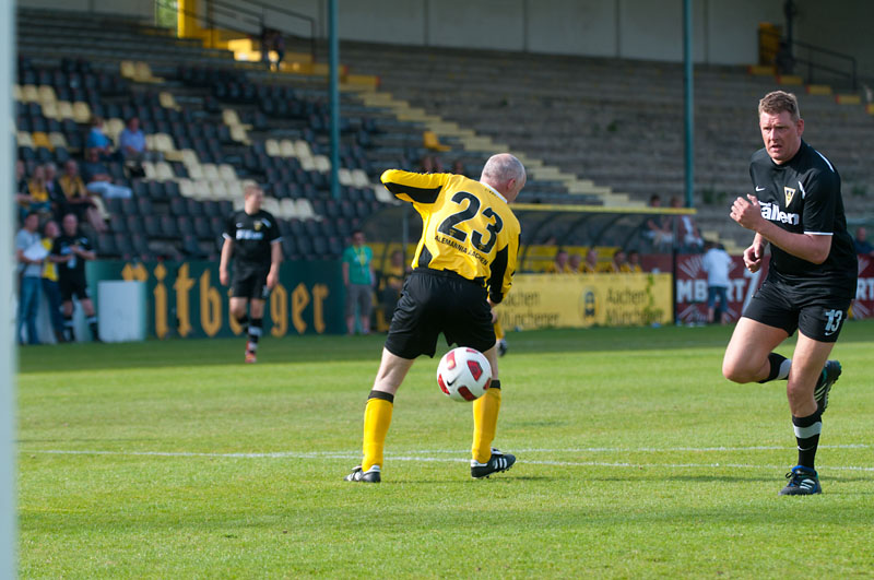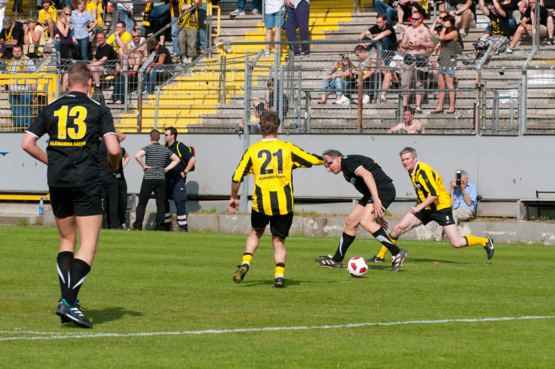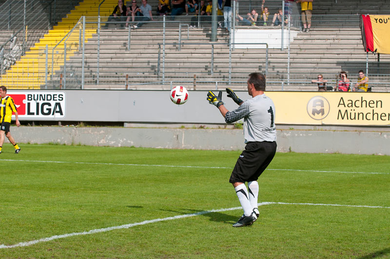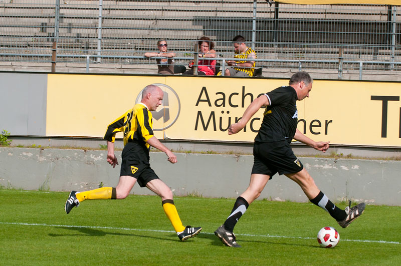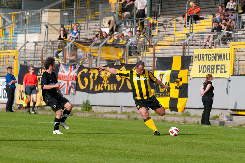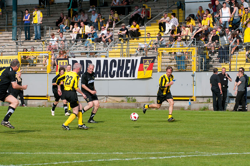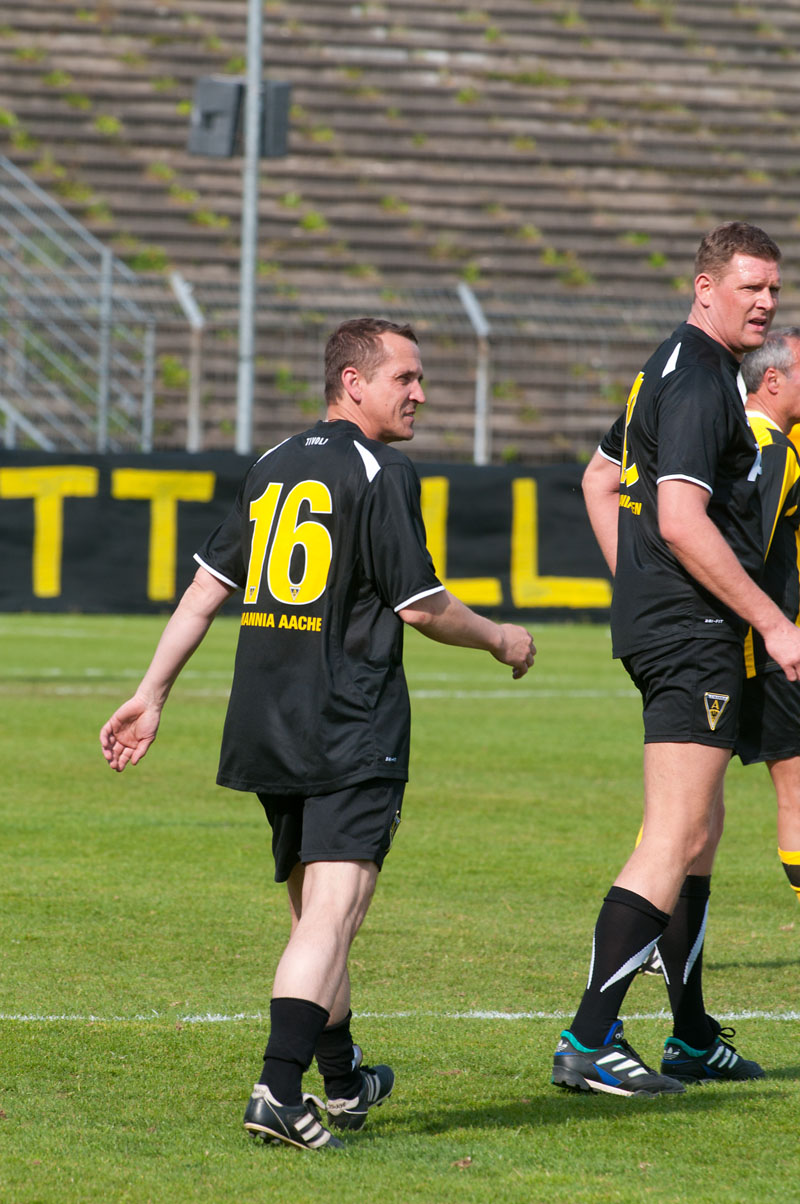 An wunderbaren Erinnerungen dürfte es Alemannias erfolgreichstem Torjäger aller Zeiten auch nicht fehlen. Jupp Martinelli denkt noch heute gerne zurück an die stimmungsreichen Heimauftritte seiner Zeit. „Der Tivoli war etwas Einzigartiges, was nun leider ein Ende findet. Dieser Abschied ist für mich persönlich mit einer gewissen Traurigkeit verbunden. Dennoch: Der Verein, die Spieler und auch die Fans können sich glücklich schätzen, mit dem neuen Tivoli ein ebenso fantastisches Stadion zu besitzen“, meinte Martinelli. Der gleichen Meinung war übrigens auch Günter Delzepich, der am Samstag eindrucksvoll die Fäden im Mittelfeld zog. „Ich muss schon sagen, dass ich gerne einmal auf dem neuen Tivoli auflaufen würde. Aber dieses alte Stadion wird man nie vergessen. Es ist schon eine gehörige Portion Wehmut mit dabei, wenn ich daran denke, dass der alte Tivoli hier bald nicht mehr stehen wird“, so Delzepich.