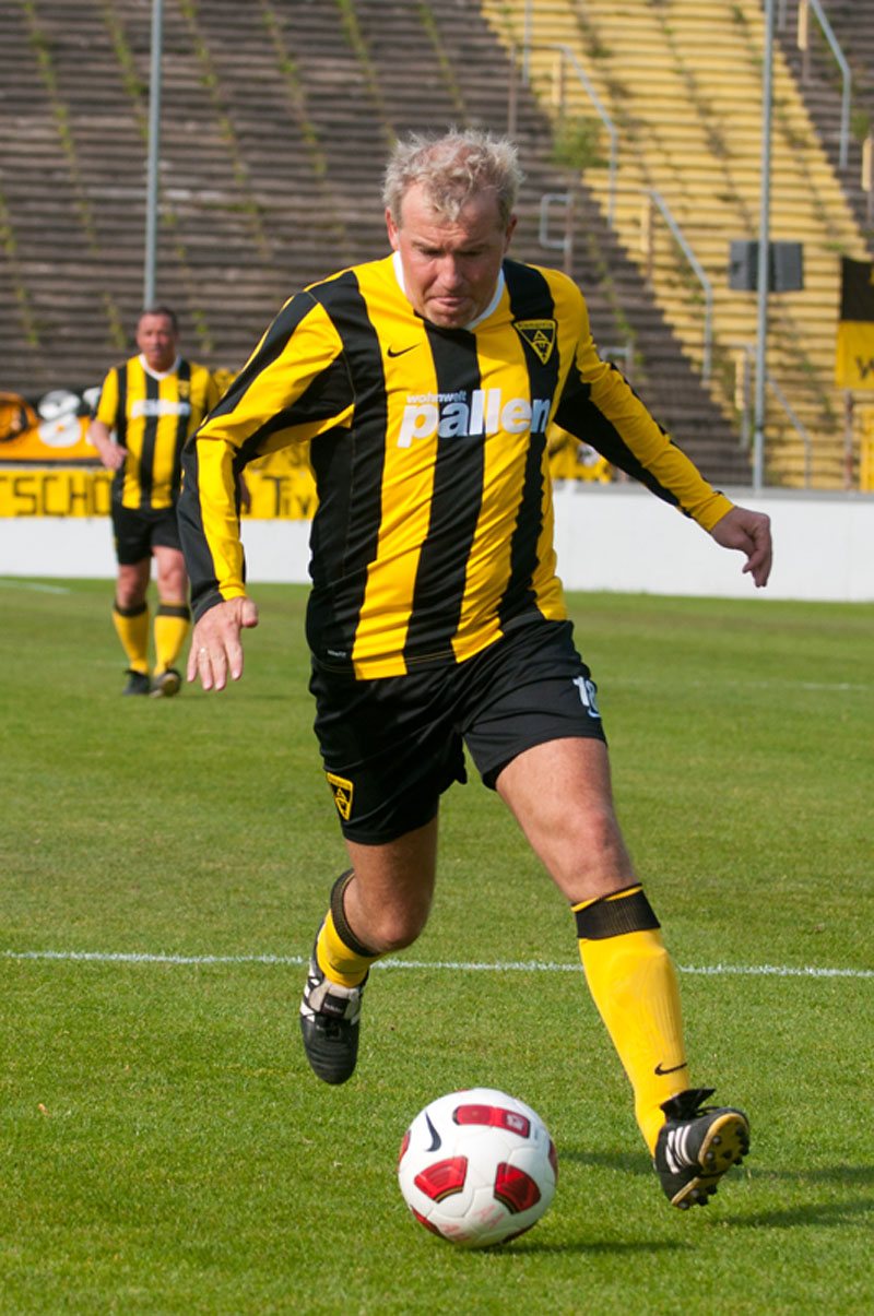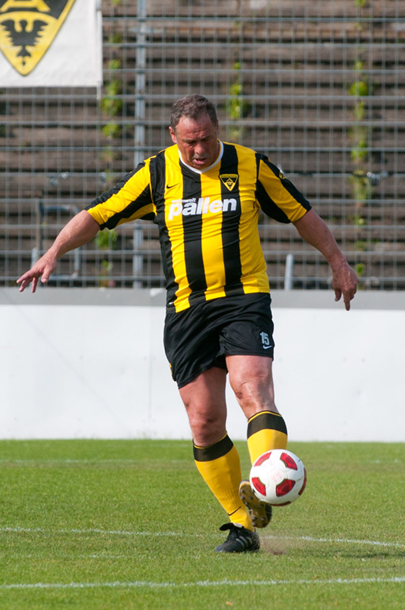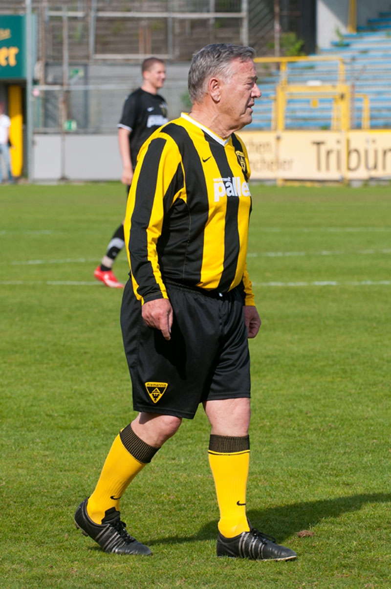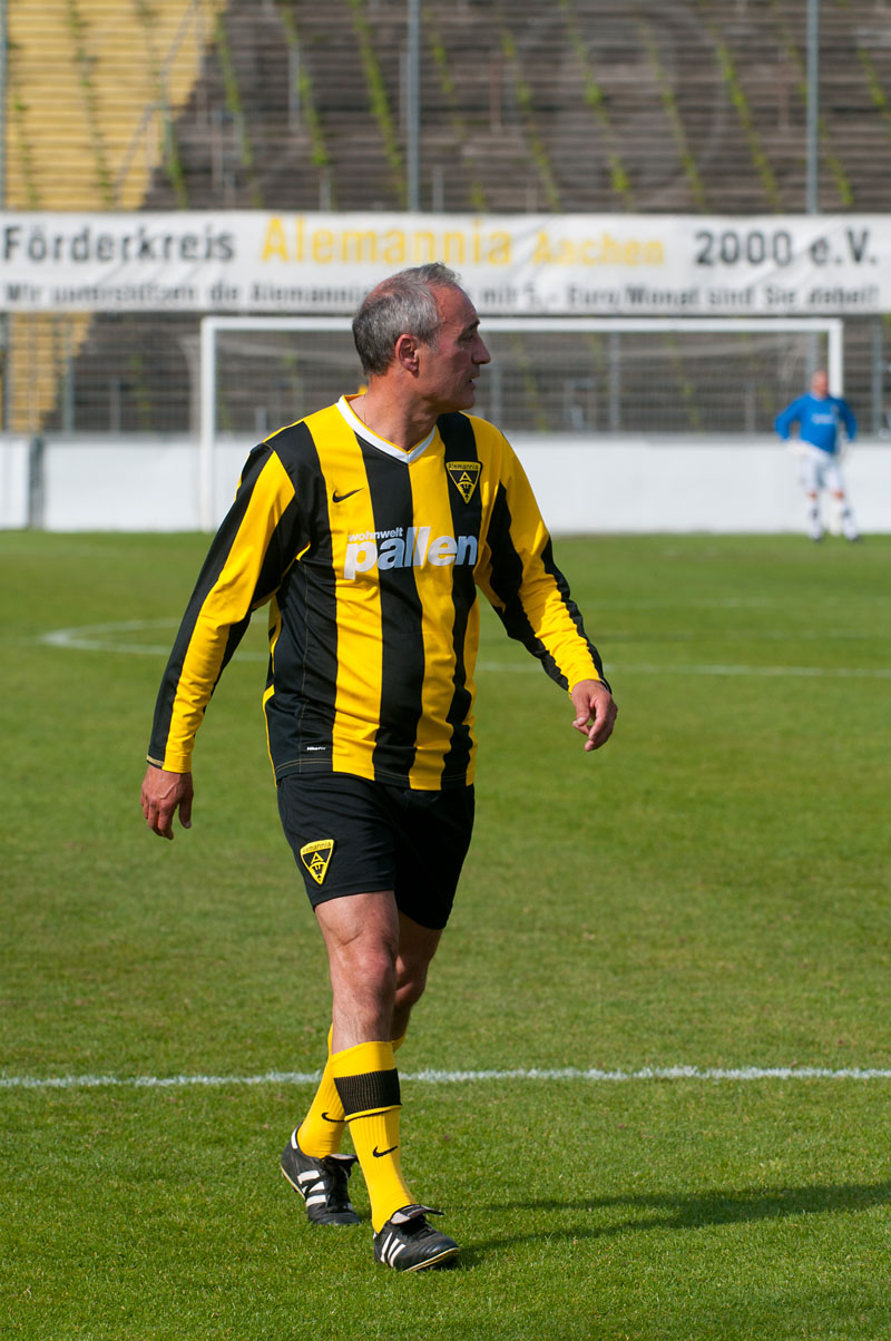 Noch nicht ganz 30 Jahre ist es her, als Joaquin „Jo“ Montanes zuletzt im schwarz-gelben Dress auflief, doch Alemannias Rekordspieler zählt zweifelsfrei zu den ganz großen Idolen des Vereins. Regelmäßig stellt er seinen Können in der Traditionsmannschaft unter Beweis, der 7. Mai 2011 dürfte in seinem persönlichen Repertoire der schönsten Erinnerungen einen Platz gefunden haben. „Ich habe hier am alten Tivoli fantastische Momente erlebt. Mit der schönste Augenblick war sicher mein Tor gegen Rot-Weiß Oberhausen, als ich fast von der Mittellinie den gegnerischen Torhüter überwand. Aber auch den heutigen Tag werde ich nicht mehr vergessen. Ich bin froh, beim Abschied dabei sein zu dürfen“, so Montanes.