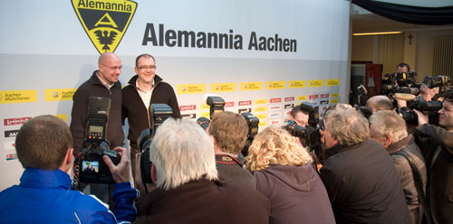 Erfreulicher ist da die Erinnerung an die neue Mitgliederkampagne im Februar: „Mein Herz gehört Dir!“ Fast 9000 Alemannen zählte der Klub damals, mittlerweile ist die 10.000er Marke erreicht. Das Herz der Gladbacher-Fans hatte der damalige Aachen-Trainer Michael Frontzeck anscheinend nicht gewonnen. Nach dem Auswärtsspiel bei der Borussia findet er sein Haus in Mönchengladbach mit Tomatenketchup verschmiert – ein dummer Jungenstreich, wie sich später herausstellt. Die Alemannia scheidet kurz darauf gegen den VfL Wolfsburg im DFB-Pokal aus und Reiner Plaßhenrich muss wegen erneuter Kniebeschwerden längere Zeit ungewollt pausieren. Der Kapitän wird im April erfolgreich operiert. Im großen Media Markt Schulturnier treten über 100 Schulmannschaften gegeneinander, im Sponsorenturnier die Partner der Schwarz-Gelben gegen die Geschäftsstelle an. Im Rahmen der Jahreshauptversammlung wird im März in einer Ergänzungswahl der neue Verwaltungsrat bestimmt und die große Ostereiersuche am Tivoli ist für die kleinen Fans der Alemannia ein voller Erfolg.