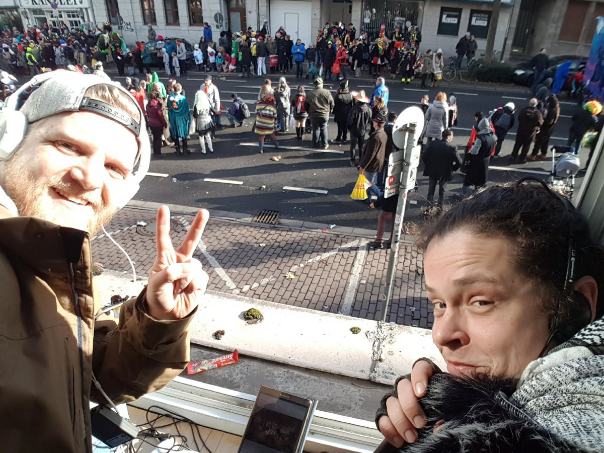 Arne Klar und Lukas Krott kommentierten in diesem Jahr zum ersten Mal den Rosenmontagszug in Aachen. Möglich machte dies eine Kooperation zwischen dem Blinden- und Sehbehindertenverein der StädteRegion Aachen e.V. 1907 und den Blindenreportern vom Tivoli.