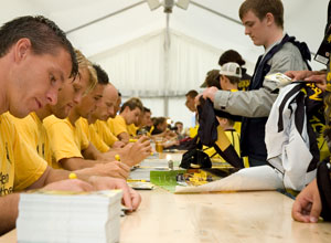 Rund 20.000 Alemannen waren an die Krefelder Straße gekommen, um den historischen Moment mitzuerleben: Nach 36 Jahren Abwesenheit freut sich Alemannia Aachen wieder auf eine Bundesligasaison.
