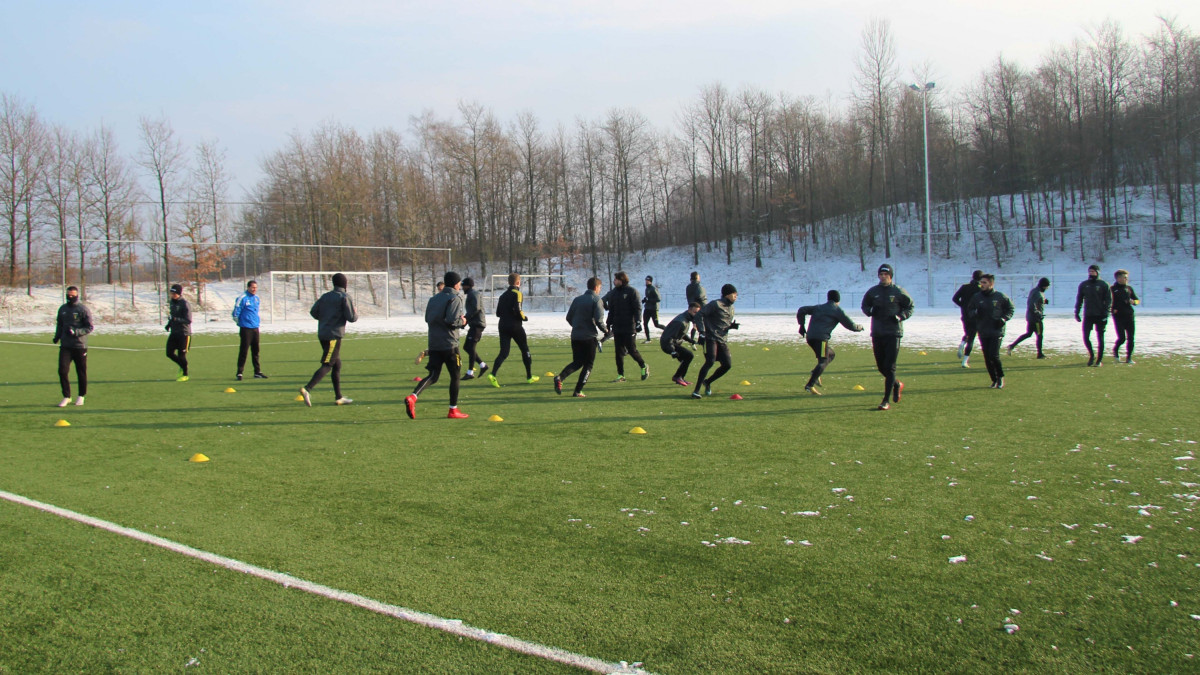 Bei Temperaturen um den Gefrierpunkt trainierten die Alemannen am Dienstag und Mittwoch im niederländischen Landgraaf. Auf der Sportanlage von VV Schaesberg absolvierte das Team um Trainer Fuat Kilic zwei eiskalte Einheiten.