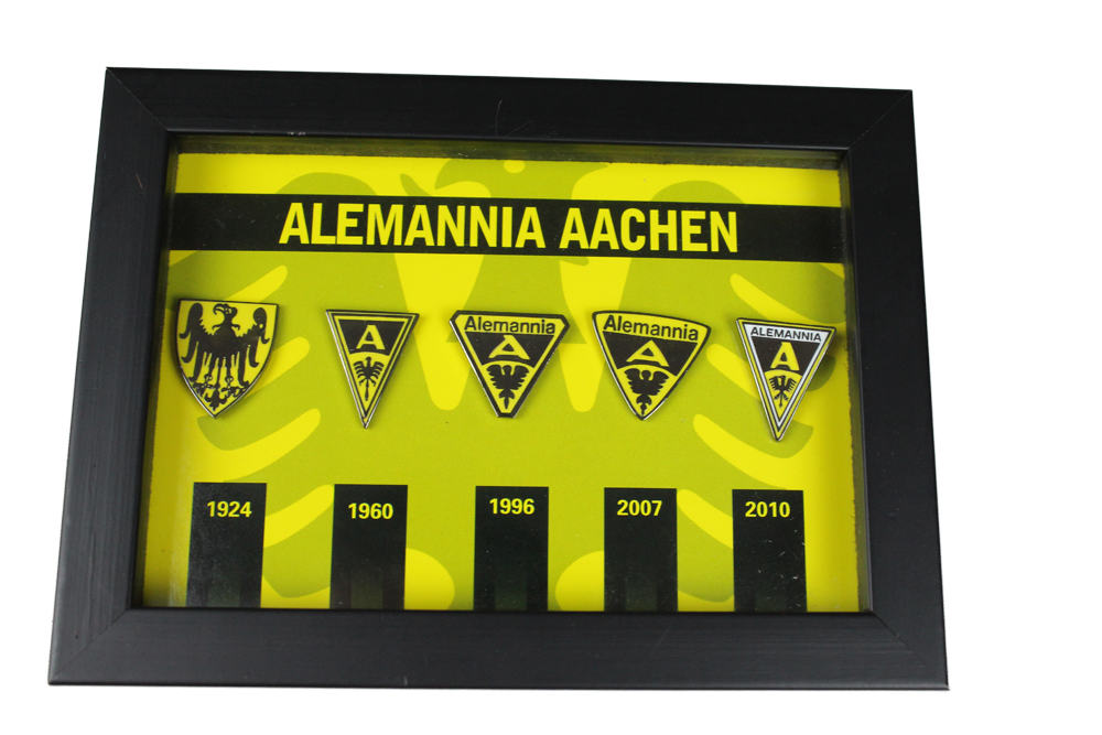 Zum Heimspiel gegen den FC Wegberg-Beeck am kommenden Freitag bietet die Alemannia den Fanartikel „Vereinswappen im Rahmen“ zum Preis von nur 9,99 Euro an.