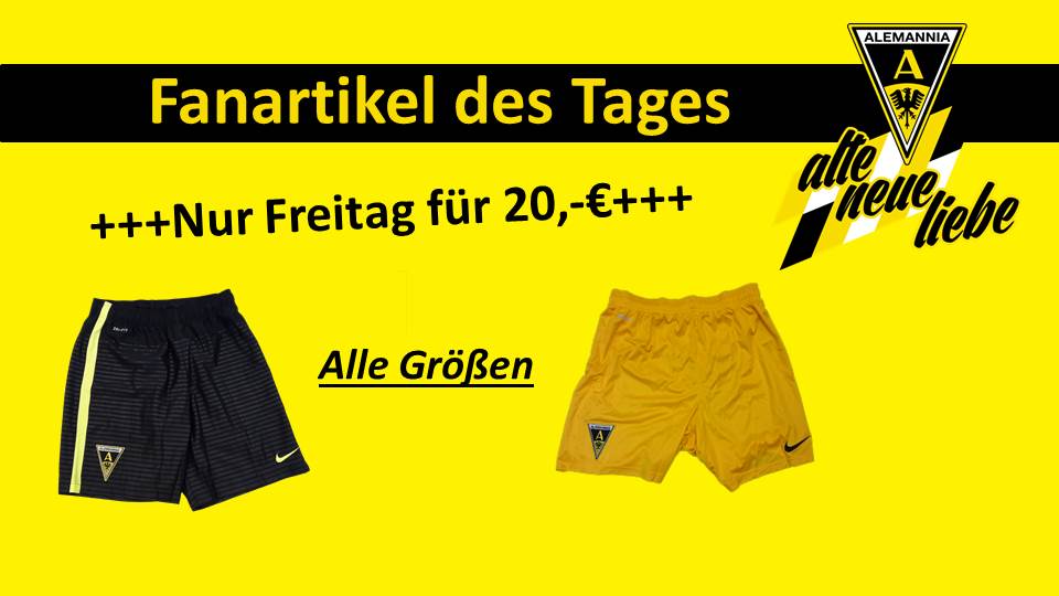 Zum Heimspiel gegen die U23 von Fortuna Düsseldorf bietet die Alemannia alle Spielerhosen (Kinder- als auch Erwachsenengrößen) aus der Nike-Kollektion für nur 20 Euro an.