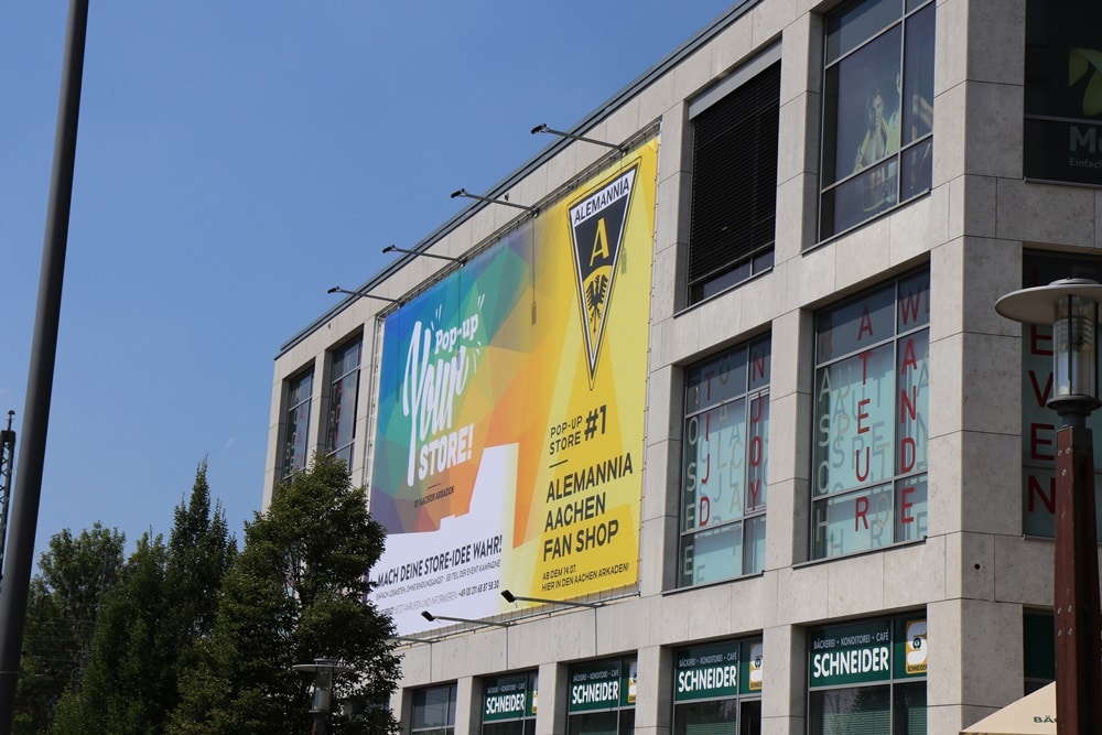 In der kommenden Woche öffnet der neue Fanshop der Alemannia in den Aachen Arkaden an der Triererstraße. Fans dürfen zum ersten Mal am 24. September um 13 Uhr in die Räume des Shops. Neben allen Fanartikeln gibt es auch das vereinseigene Kaiserstädter Bier und Eintrittskarten für den Tivoli zu kaufen.