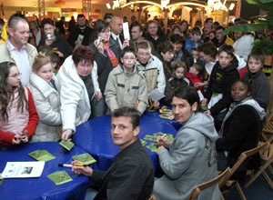 Das dachte sich auch Alemannia Aachen und unterstützte die Aktion auf der Euregio Wirtschaftsschau mit drei Spielern des Kaders. Reiner Plaßhenrich, Cristian Fiel und Moses Sichone signierten auf der Euregio die Löffelpatenschaften und kamen mit den Spendern ins Gespräch.