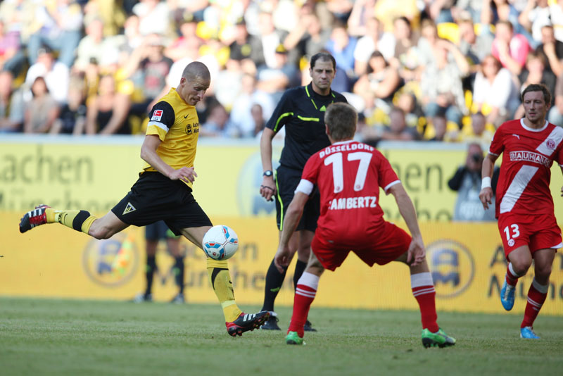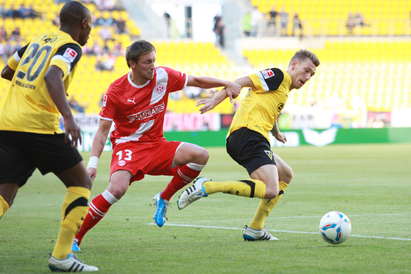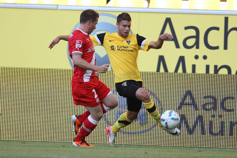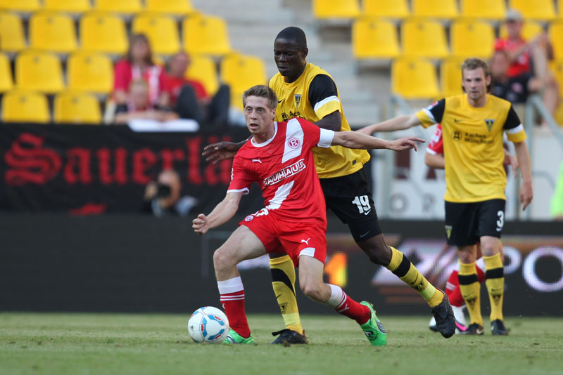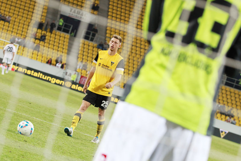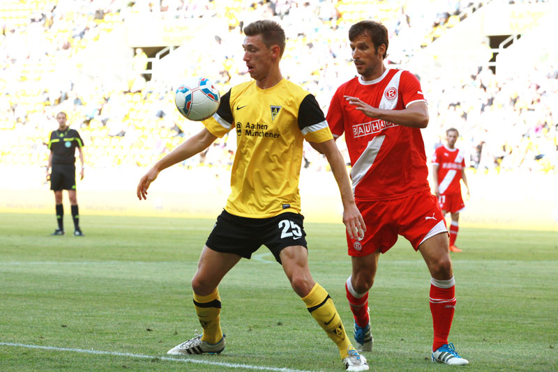 Auf Torchancen warteten die 11.418 Besucher am Tivoli zunächst vergeblich. Beide Teams hatten ihre Probleme im Spiel nach vorne. Es dauerte genau 28 Minuten, bis die Gäste aus Düsseldorf für den ersten Aufreger sorgten. Beister setzte sich im Duell gegen Korte durch, seinen Schuss klärte Hohs stark zur Ecke. Wenig später dann auch die Alemannia mit einem schönen Angriff über die linke Seite, doch Uludags Hereingabe verpasste Auer um wenige Zentimeter (31.).