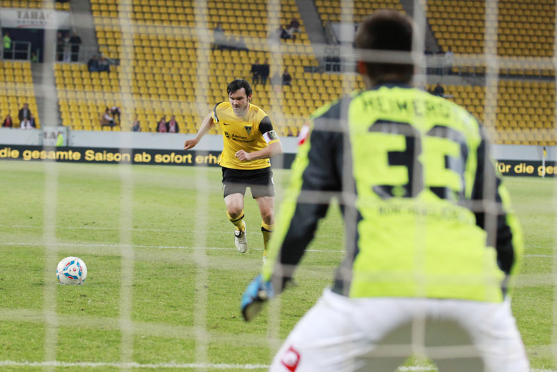 Es stockte ein wenig im Spiel nach vorne, so dass Hyballa bereits in der 37. Minute den ersten Wechsel vornahm: Für Yabo durfte Narciso Lubasa ein wenig Spielpraxis sammeln. Für nochmals Torgefahr sorgte allerdings die Fortuna kurz vor Ende, als Ex-Alemanne Sascha Dum eine scharfe Flanke hereinbrachte, die Olajengbesi in letzter Not klärte. Es lief auf ein Elfmeterschießen hinaus, doch die Landeshauptstädter erzielten in der Schlussminute doch noch den Siegtreffer: Kruse gewann den Zweikampf gegen Strifler, seinen Schuss konnte Hohs noch abwehren, doch Adriano Grimaldi gelang im Nachschuss von der Strafraumgrenze aus der entscheidende Treffer zum 0:1 (45.). Wenige Sekunden später war Schluss.