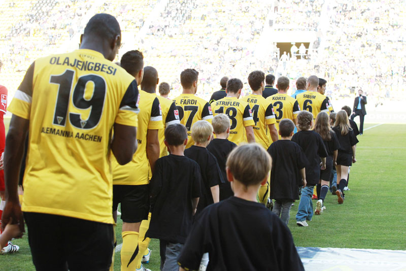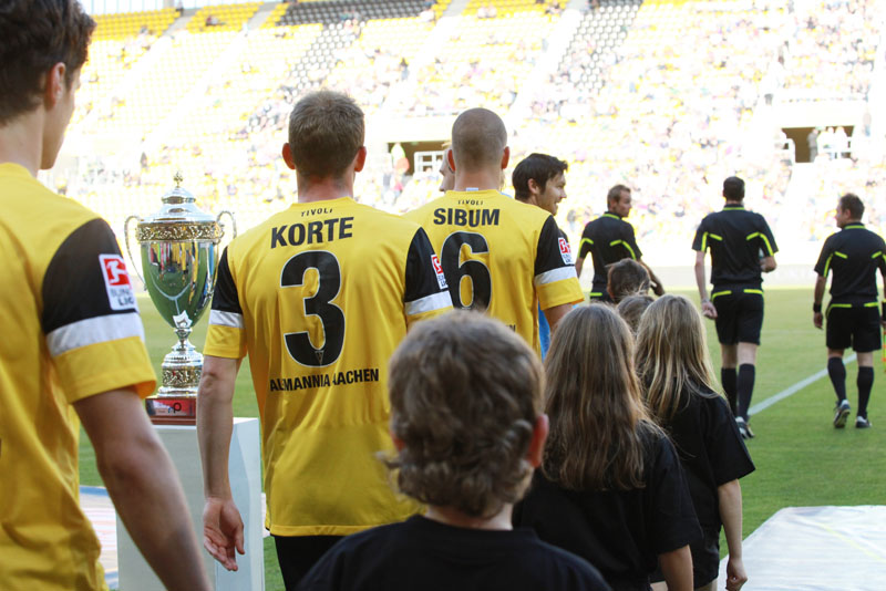 Auch wenn die Alemannia den Titel also nicht mehr verteidigen konnte, so wollte man sich im letzten Spiel des Abends gegen den Erstligisten nochmals mit einer starken Leistung vor heimischen Publikum präsentieren. Chefcoach Peter Hyballa veränderte die Mannschaft auf einigen Positionen: Boy Waterman rückte für Hohs zwischen die Pfosten. Die Viererkette setzte sich aus Jonas Strifler, Seyi Olajengbesi, Tobi Fesithammel und Shervin Radjabali-Fardi zusammen. Bas Sibum begann erneut vor der Abwehr, über die Außen kamen diesmal Manuel Junglas und Alper Uludag. Hinter den beiden Spitzen Benny Auer und Marco Stiepermann agierte „Ray“ Yabo.