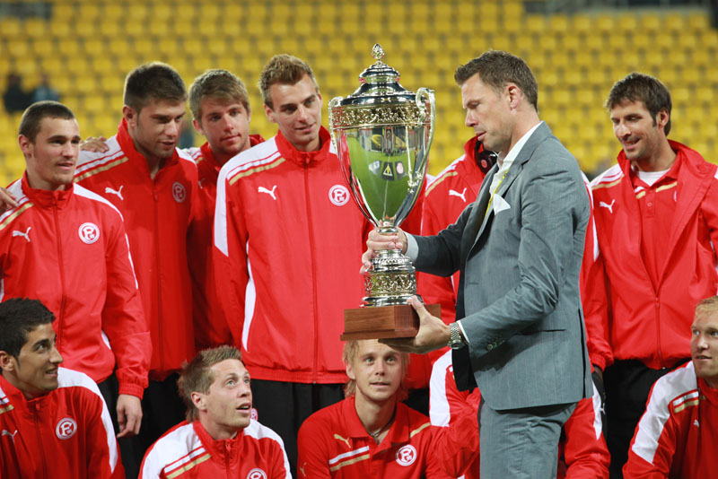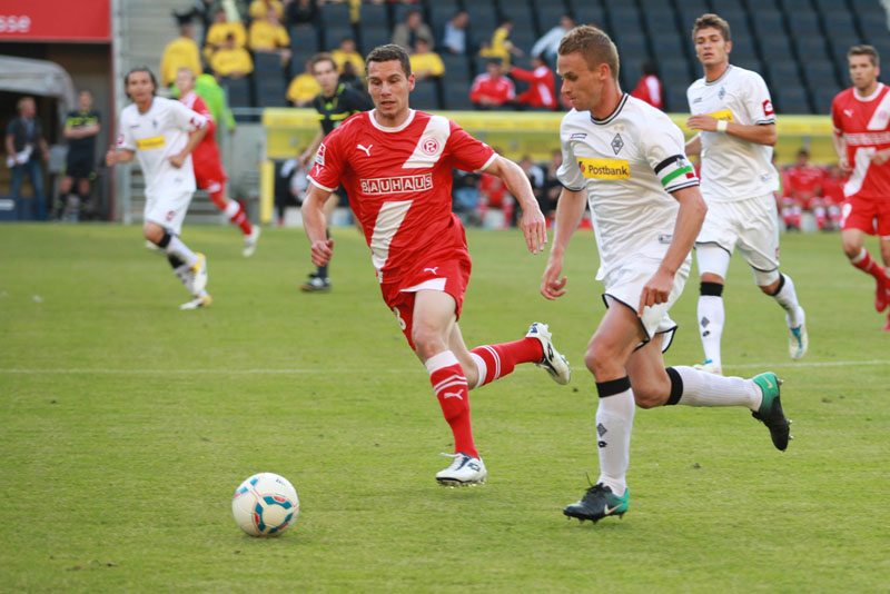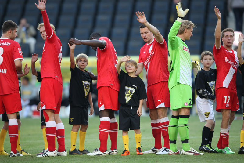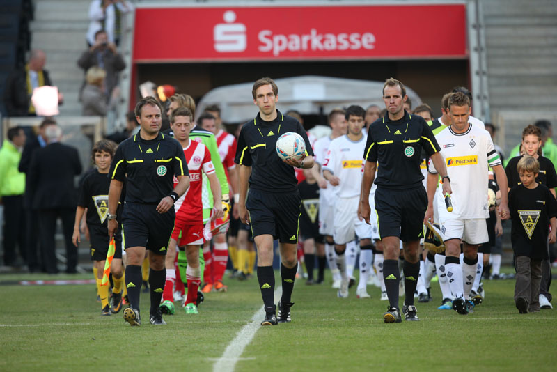Für die Fortuna ergab sich im zweiten Spiel des Abends also die Gelegenheit, sich den Derby Cup mit einem Sieg gegen Bundesligist Borussia Mönchengladbach frühzeitig zu sichern. Doch es waren die Borussen, die von Beginn an das Tempo der Partie eindeutig bestimmten – ohne allerdings im Angriff zwingend für Gefahr zu sorgen. Die größte Chance zur Führung hatte Marco Reus, der Düsseldorfs Schlussmann Ratajczak nach schöner Einzelaktion zu einer guten Parade zwang (38.). Nach 45 Minuten hieß es allerdings 0:0, so dass das Elfmeterschießen entscheiden musste. Da sowohl Dowidat als auch Brouwers auf Seiten der Gladbacher verschossen, stand Fortuna Düsseldorf nicht nur als Sieger der Partie, sondern auch des diesjähriger Titelgewinner des Derby Cups frühzeitig fest.