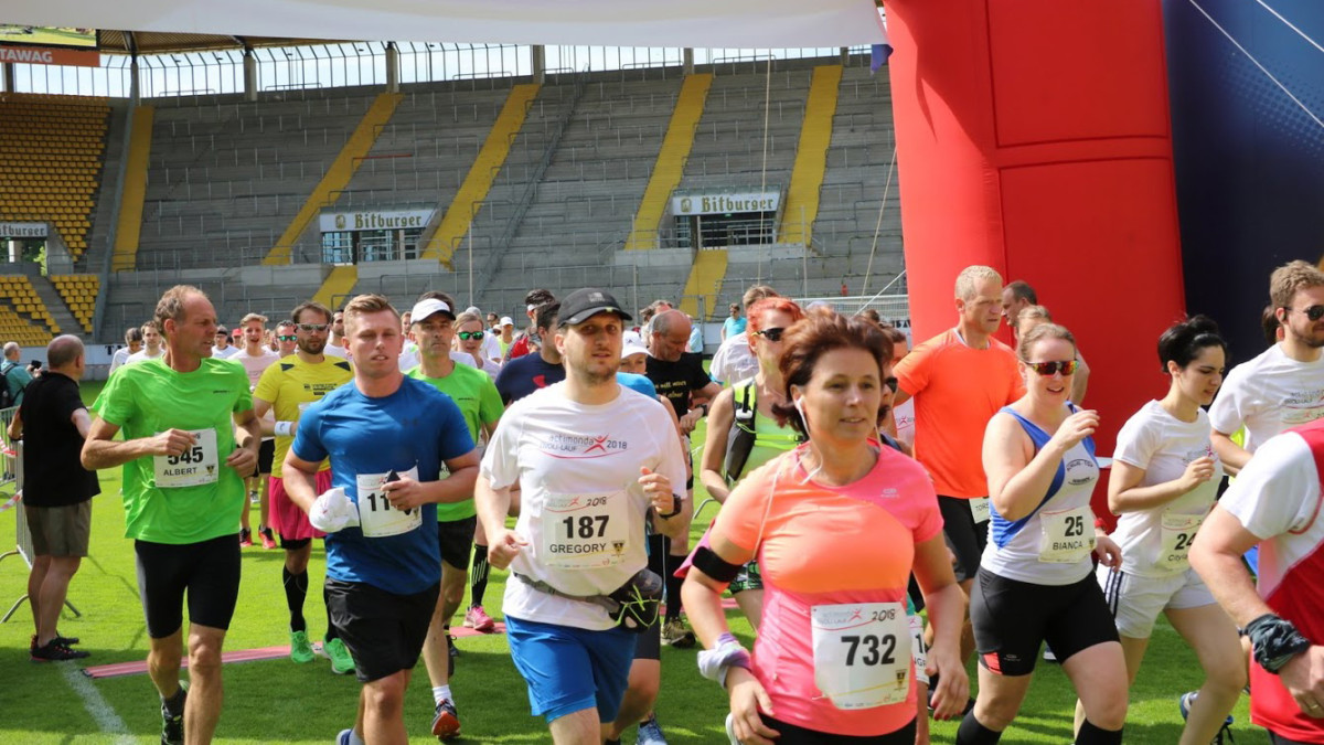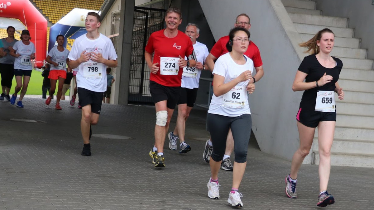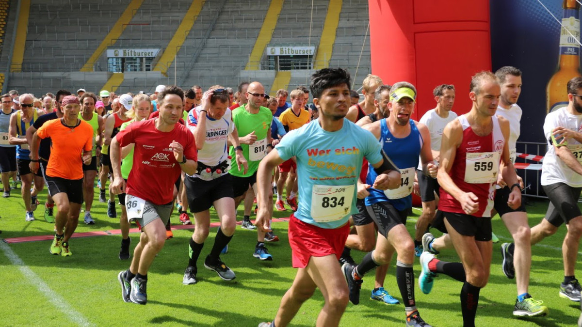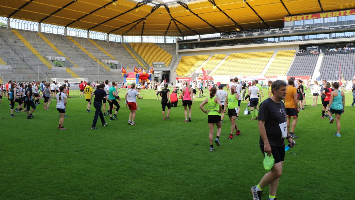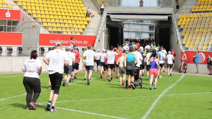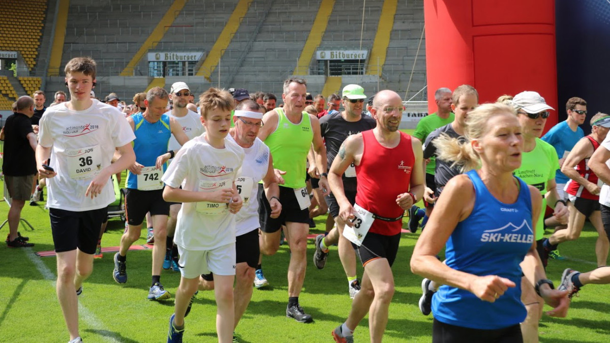 Bei der neunten Auflage des actimonda Tivoli-Laufs gab es eine Premiere: Der Startschuss fiel zum ersten Mal auf dem grünen Rasen - für die rund 1.000 Läufer ein tolles Erlebnis.