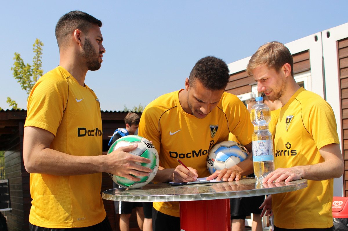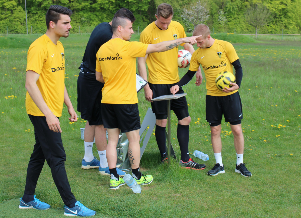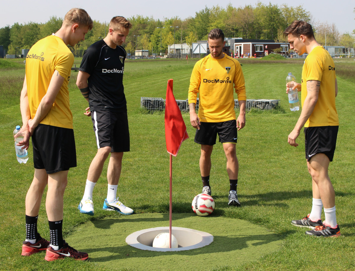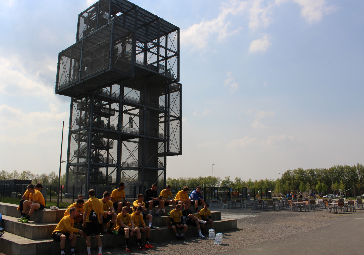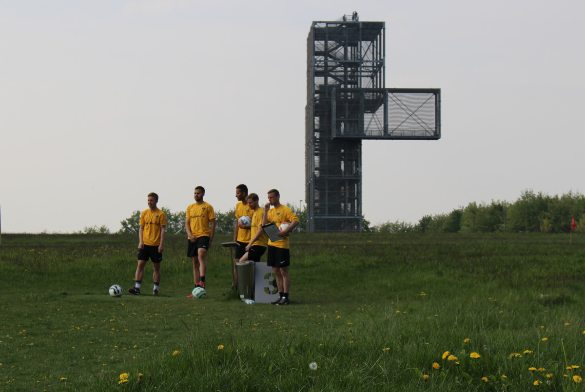 Am Fuße des Indemanns, einem Aussichtsturm auf der Goltsteinkuppe in Inden, absolvierten die Fußballer der Alemannia am Montagnachmittag bei strahlendem Sonnenschein ihre zweite Trainingseinheit des Tages. Nachdem morgens auf dem Trainingsplatz am Tivoli intensiv gearbeitet wurde, spielten Dennis Dowidat & Co. Fußballgolf.