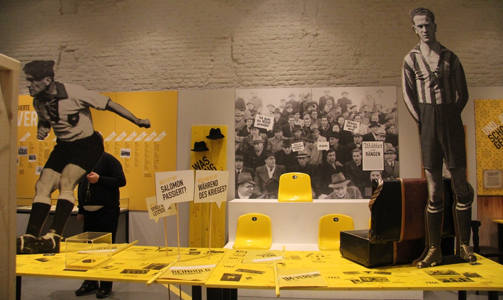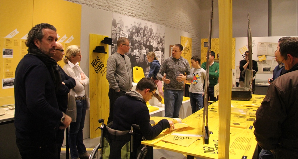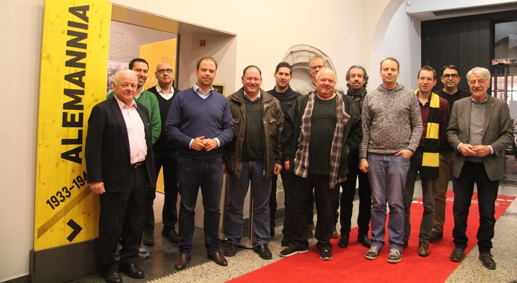 Die Gremien der Alemannia besuchten am Freitag geschlossen die Ausstellung im IZM und begaben sich auf eine Zeitreise. Kurator André Bräkling und René Rohrkamp, Leiter des Aachener Stadtarchivs, führten die Vertreter von Präsidium, Aufsichts-, Verwaltungs- und Ältestenrat durch die Ausstellung, die ausführlich die unterschiedlichen Lebenswege von Reinhold Münzenberg und Max Salomon aufzeigt.