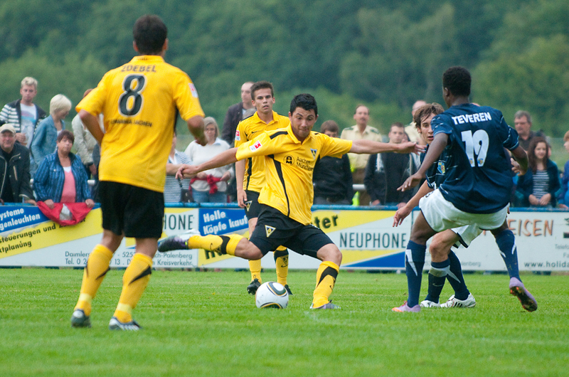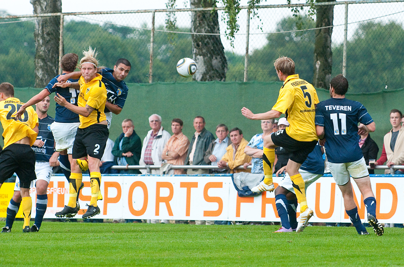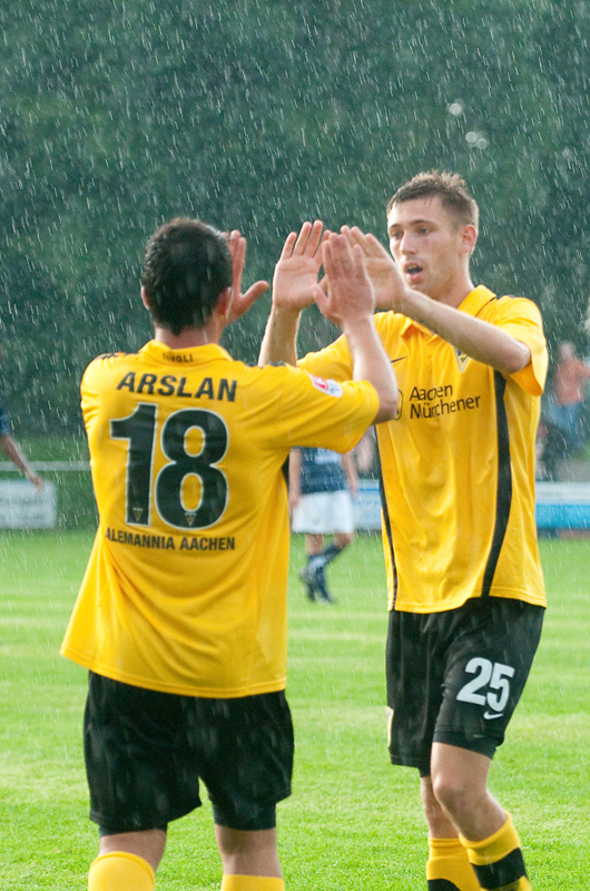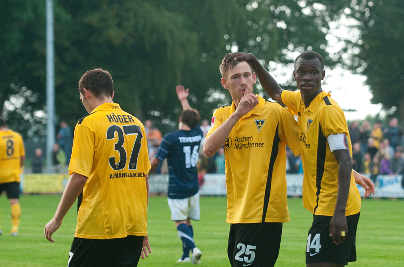 Zum 100-jährigen Bestehen von Germania Teveren gastierte die Alemannia am Mittwoch im Heidestadion. Vor knapp 1500 Zuschauern gewannen die Schwarz-Gelben den Test mit 11:0. Babacar Gueye traf dreifach mit dem Kopf, Tolgay Arslan und Henrik Ojamaa waren jeweils doppelt erfolgreich.