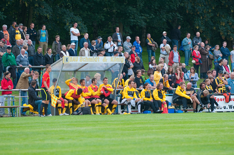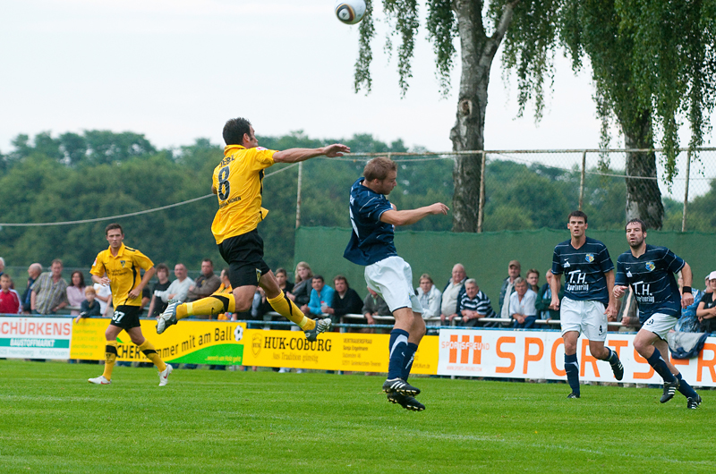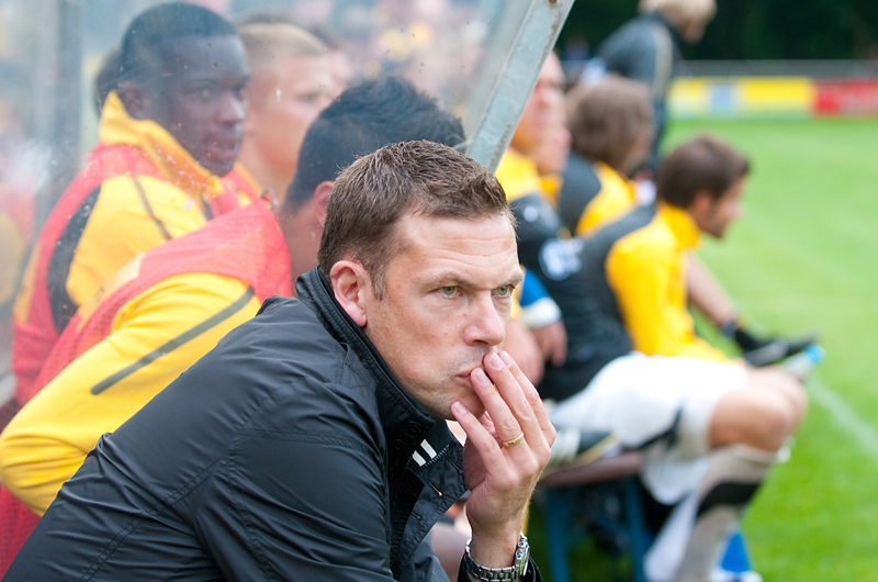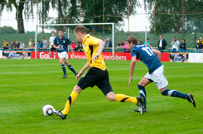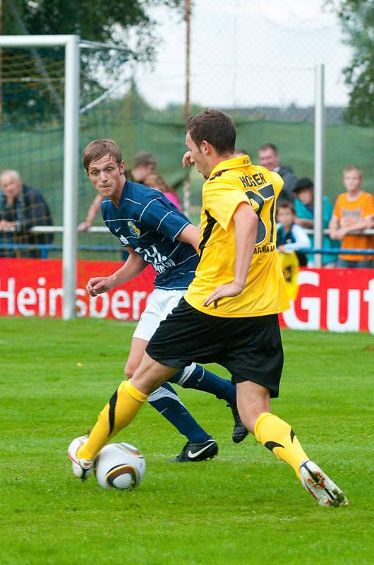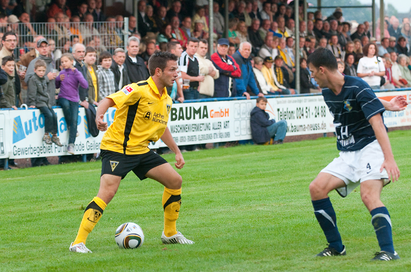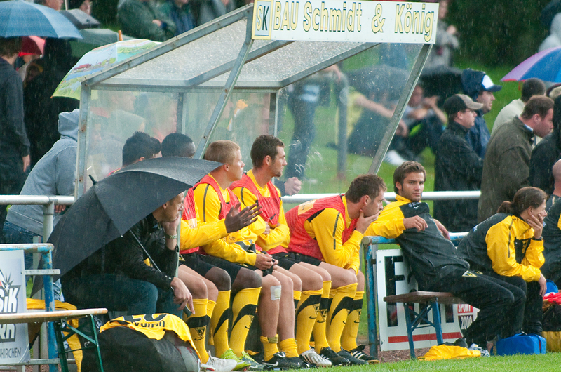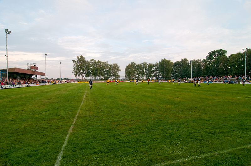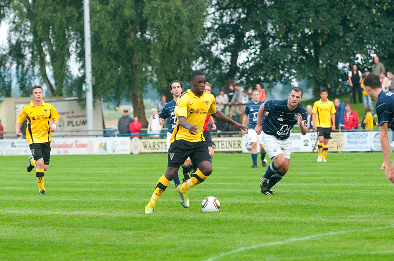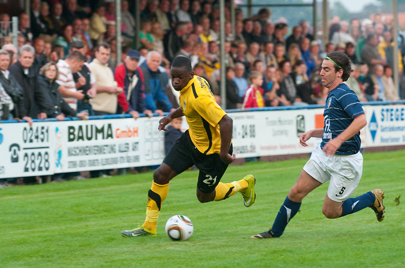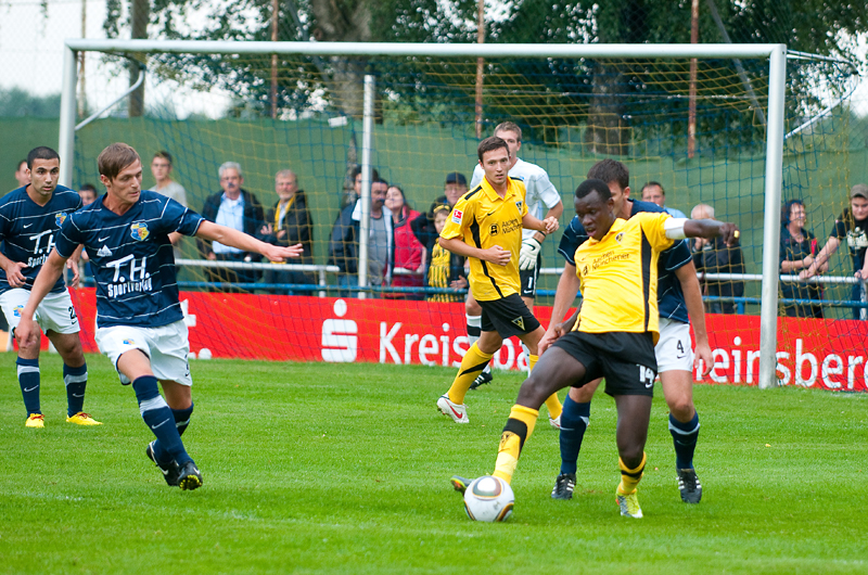 Wechsel zur Pause: Thorsten Stuckmann kam für Hohs, Thomas Stehle, Thorsten Burkhardt und Henrik Ojamaa für Feisthammel, Höger und Junglas. Es dauerte keine acht Minuten, da hatte Babs Gueye sein drittes Kopfballtor erzielt. Nach Rechts-Flanke von Burkhardt war der Stürmer zur Stelle (53.). Es sollte seine letzte Aktion sein, er wurde kurz darauf von Neuzugang Juvhel Tsoumou abgelöst. Außerdem kam Kevin Kratz für Zdebel (60.). Den nächsten Treffer markierte der agile Arslan (64.), während der eingewechselte Nock auf der anderen Seite den Ehrentreffer vergab. Ein Raunen ging durch’s Publikum, als Zoltan Stieber eine Hereingabe von Demai von der Strafraumgrenze volley ins Netz setzte (68.). Mit seinem schwächeren rechten Fuß bereitete der Ungar dann das 8:0 durch Tsoumou vor, der per Kopf ins kurze Eck traf (75.). Kaum auf dem Feld, musste Germanias Ersatzkeeper Wunsch auch schon hinter sich greifen. Arslan traf mit rechts von der Strafraumgrenze (79.). Und auch Ojamaa durfte noch jubeln. Schneller Angriff über Burkhardt und Stieber, kein Problem für den Esten (83.). Wie auch zwei Minuten später, als er – von Arslan auf die Reise geschickt – allein vor dem Tor die Ruhe bewahrte und cool einschob.