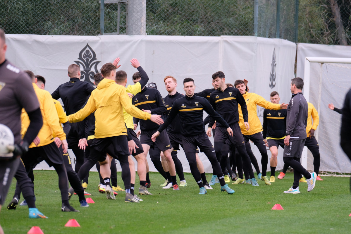 Am Sonntag trainierte die Mannschaft zweimal. Morgens um 10 Uhr empfingen die mitgereisten Fans das Team um Dimitry Imbongo, Franko Uzelac und Co. Jannik Mause fehlte krankheitsbedingt an den kommenden Tagen auf dem Trainingsplatz. Den ersten Härtetest bei angenehmen 16 Grad sollte es am Montagnachmittag geben. In Side traf die Alemannia auf den Regionalligisten aus der Staffel Nordost, den 1. FC Lokomotive Leipzig, der momentan auf Platz sieben in seiner Liga steht. Nach intensiven 90 Minuten und einem Komplettwechsel der Mannschaft zur Pause trennten sich beide Teams 1:1-Unentschieden. Das Tor für die Schwarz-Gelben markierte Dimitry Imbongo in der 79. Minute, nachdem Leipzig kurz nach Anpfiff in Führung gegangen war. Nach kräftezehrenden Trainingseinheiten merkte man beiden Teams eine gewisse Müdigkeit an: „Da waren zwei Teams wie angeschlagene Boxer unterwegs“, resümierte Helge Hohl nach Spielende. Nach kurzer Regeneration an der Poolanlage, fanden sich Mannschaft, Fans und Sponsoren zum gemeinsamen Abendessen im Hotelrestaurant ein. Ein geselliger Abend mit viel Plausch und Austausch sollte einen gelungenen Tag in Belek abrunden.