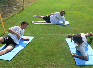 Im Trainingslager herrscht bei den Physiotherapeuten Hochkonjunktur. Die müden Kicker-Beine sorgen für Arbeitstage bis in die späten Abendstunden. Rainer Sieven kümmert sich während der Einheiten zusätzlich um die angeschlagenen Spieler. Wenn die Wade zwickt und es fürs Mannschaftstraining nicht reicht, lässt sich der Physiotherapeut und Reha-Trainer spezielle Übungen einfallen.
