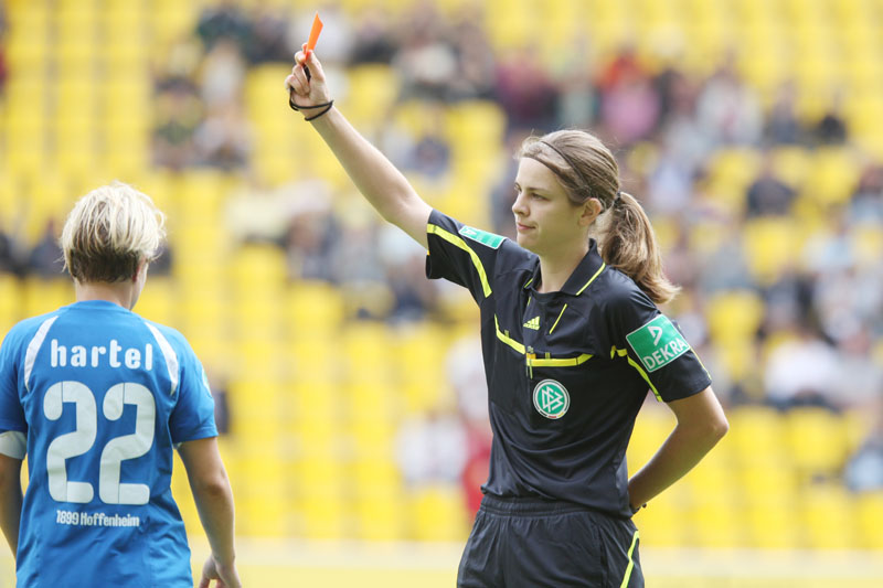 Hoffenheim nutzte das eiskalt aus. Sanya Arief hatte gegen die blitzschnelle Claire Savin auf der linken Abwehrseite das Nachsehen, ihren Zupfer bestrafte Schiedsrichterin Isabelle Herrmann mit einem Strafstoß. Schneider verwandelte sicher links unten ins Eck – 0:3. Keine 60 Sekunden später brannte es erneut im Aachener Strafraum. Hahn fuhr gegen Hartel das Bein aus, Herrmann zeigte erneut auf den Punkt. Diesmal versenkte Schneider rechts oben, mit ihrem dritten Treffer stellte die Mittelfeldspielerin auf 0:4. Der Drops schien gelutscht, hätte Hartel sich nicht zu einer völlig überflüssigen Tätlichkeit hinreißen lassen. Nach der berechtigten Hinausstellung witterten die Alemanninnen wieder ein wenig Morgenluft, kamen bis zur Pause aber zu keiner echten Torgelegenheit.
