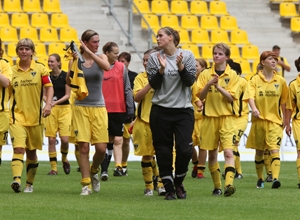 „Es war schon ein Klassenunterschied zu sehen. Hoffenheim war einfach fitter als wir“, bilanzierte Coach Manuel Ortiz. „Die Mädels waren nervös, das hat man nicht nur beim Fehler vor dem Führungstreffer gemerkt. Trotzdem war es für uns eine super Werbung und ein tolles Erlebnis. Die Spielerinnen haben schon gemerkt, wie sie von außen unterstützt wurden“, sagte Ortiz, während sich seine Spielerinnen den verdienten Applaus von den Rängen abholten.