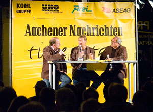 Natürlich kam Patrick Milchraum nicht umhin, die bangen Wochen vor dem Abstieg der Alemannia noch einmal zu schildern. „Als ich im März unterschrieben habe, sah alles danach aus, dass ich zu einem Erstligisten wechsle“, beschrieb der schnelle Linksfuß sein wiederholtes Schicksal, denn bei seinem Wechsel zu 1860 München lief es genauso unglücklich für ihn. „Ich hoffe, es liegt nicht an mir“, scherzte der gebürtige Schwabe, der jetzt „alles dafür tun will, dass es ab kommender Saison die Erste Liga ist.“ Dabei zeigte sich der Offensivmann durchaus selbstkritisch. Am Anfang habe er durchaus Probleme gehabt, sei nicht recht in Tritt gekommen. „Jetzt läuft es ganz gut für mich. Aber ich will nicht nur spielen, sondern der Mannschaft auch weiterhelfen.“ Mit den bisher erreichten 14 Punkten könne man zwar nicht rundum zufrieden sein, aber die Mannschaft finde immer besser zusammen. „Wir sind nicht weit abgeschlagen und es sind noch genug Spiele.“
