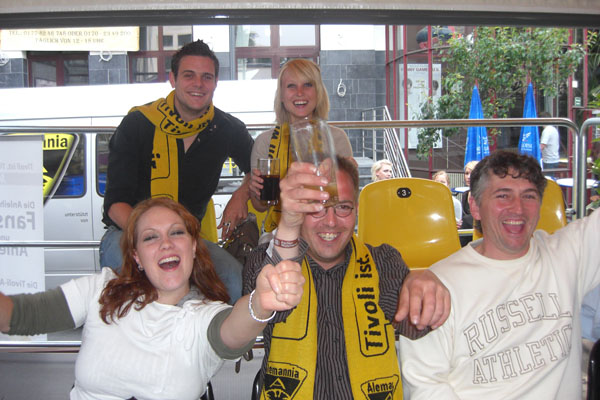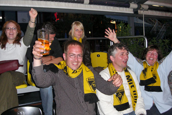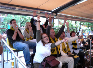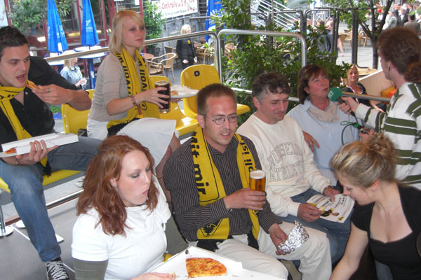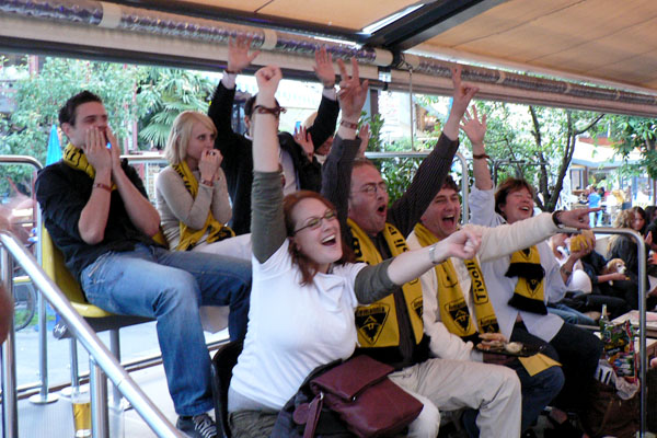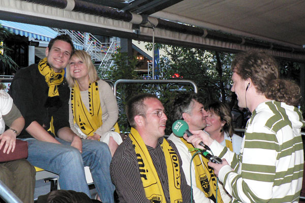 Am Ende setzte sich bekanntlich die Squadra Azzurra durch, was die italienischen Anhänger in echte Partystimmung versetzte. Mittendrin die Sieger des Gewinnspiels von 100,5 Das Hitradio und Alemannia, die wie immer die besten Plätze hatten. Michael Schwenzfeier hatte sich am Morgen die acht Plätze auf dem gelben Rang gesichert. Von Donnerstag bis Samstag lädt der gelbe Rang dann im Cinekarree Aachen sowie am Sonntag im Cinetower Alsdorf zum gemeinsamen Fußballgucken ein.