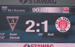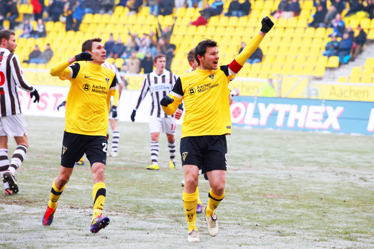 Mit einem guten Gefühl ging man in die noch ausstehenden Spiele der Rückrunde. Im Trainingslager war der Grundstein gelegt worden für den wichtigen Schlussspurt in der Liga. Um die Klasse zu halten, mussten deutlich mehr Punkte eingefahren werden als in der Hinrunde. Zum ersten Pflichtspiel des Jahres 2012 empfing man mit dem FC ST. Pauli eines der Spitzenteams aus der oberen Tabellenregion. Die Alemannia zeigte die bis dato wohl besten 30 Minuten der Saison und sorgte mit zwei Treffern durch Benny Auer und Aimen Demai für eine frühe komfortable Führung. Am Ende war es eine überzeugende Leistung und ein verdienter 2:1-Sieg gegen den FC St. Pauli.