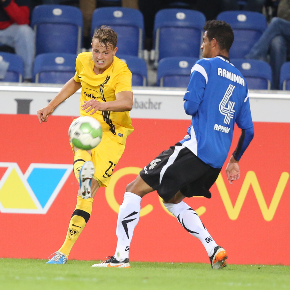 Doch bevor man nach Ostwestfalen reiste, konnte abseits des Rasens mit Geller Sicherheitstechnik der so wichtige Hauptsponsor präsentiert werden. Mit dem neuen Sponsor auf der Brust erwischten die Schwarz-Gelben bei der Arminia einen zufriedenstellenden Saisonstart und holten durch ein 1:1 verdient einen Punkt. Eine Woche später empfing man zum ersten Heimspiel der Saison den SV Wacker Burghausen. Mit 3:2 setzten sich die Jungs vom Tivoli am Ende durch, bei der Alemannia lief zu diesem Zeitpunkt sportlich alles nach Plan.