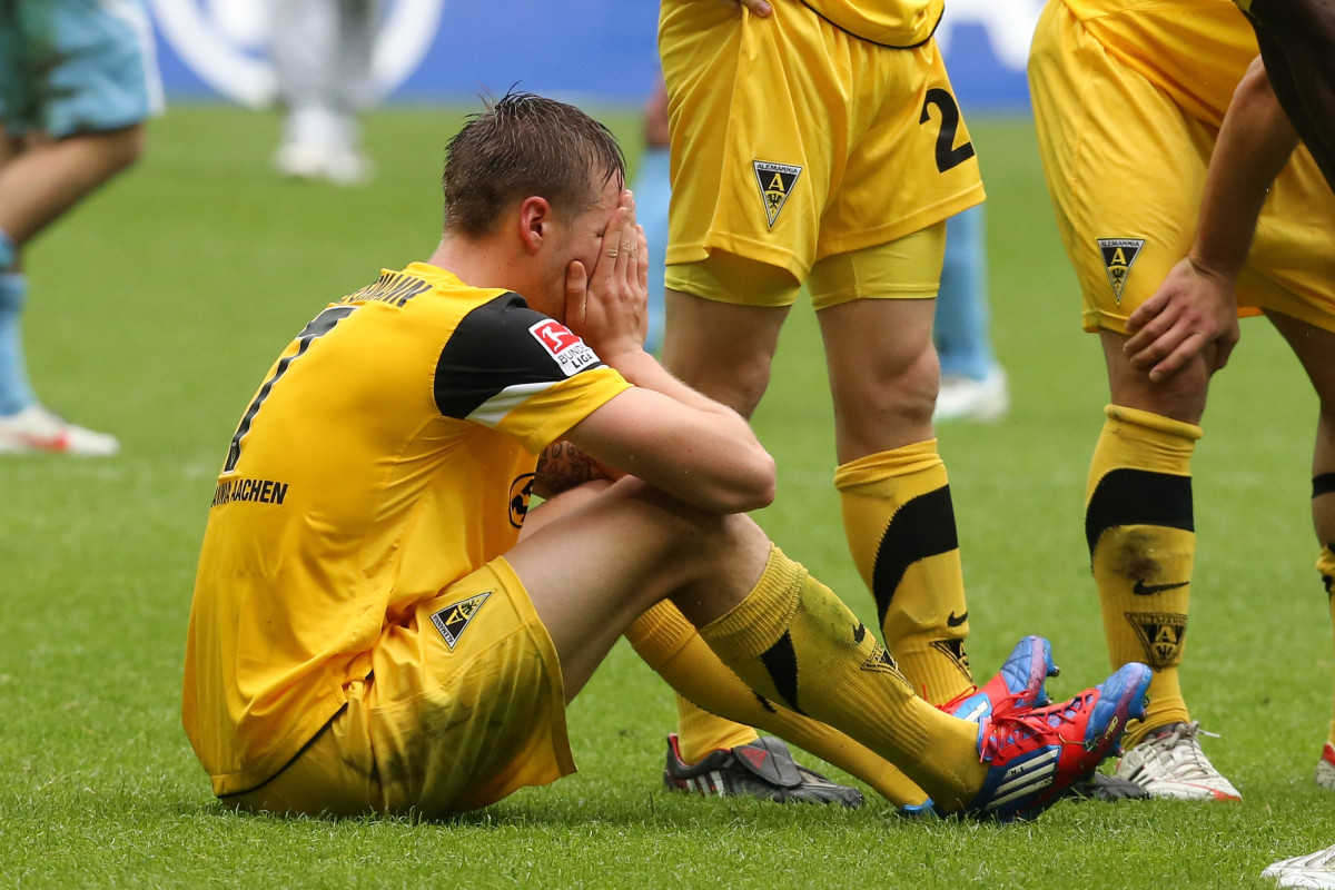 Die eigenen Hausaufgaben wurden hervorragend erledigt, mit 2:1 gewann man in der Allianz Arena in München. Doch die überwiegende Zeit ging der Blick nach Karlsruhe, wo die Hausherren früh gegen die Eintracht aus Frankfurt in Führung gingen. Der Ausgleich musste her, doch er fiel nicht. Als die Partie in München abgepfiffen wurde, ging man zwar verdient als Sieger vom Platz, doch es war einer der bittersten Momente der Vereingeschichte. Der Traditionsverein aus Aachen, bis heute Spitzenreiter der ewigen Zweitligatabelle, verabschiedete sich unter Tränen. Spieler, Verantwortliche und Fans konnten es nicht fassen: Der bittere Weg in die Dritte Liga musste angetreten werden.