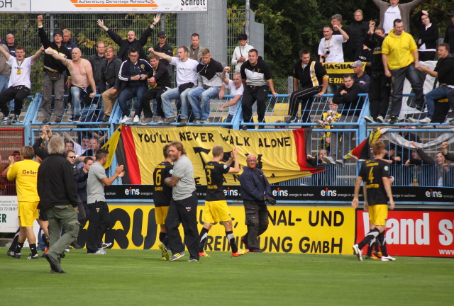 Im letzten Spiel des Monats gab es bei den Schwarz-Gelben auch wieder Grund zum Jubeln: Wahrlich in letzter Sekunde drehten die Schwarz-Gelben die Partie beim Chemnitzer FC und gingen verdient mit 2:1 als Sieger vom Platz – der erste Dreier unter van Eck.