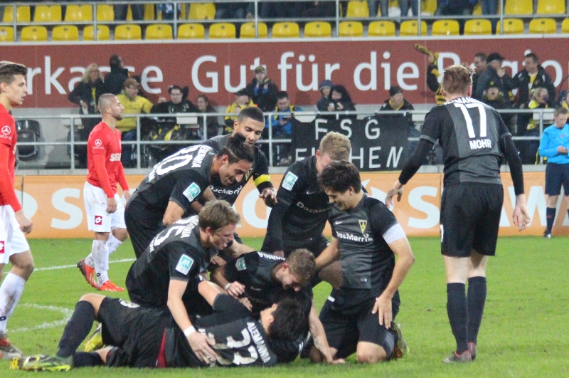 Am Freitagabend, 31. Oktober, war es dann soweit. Die Alemannia reiste als Verfolger zu Viktoria Köln in den Sportpark Höhenberg. Über 3.000 Aachener begleiteten die Schützlinge von Peter Schubert in die Domstadt und sorgten für Gänsehautatmosphäre auf den Rängen. Auf dem Platz kämpften elf leidenschaftliche Alemannen um jeden Zentimeter. Dowidat sorgten nach 85 Minuten für die Erlösung und einen schwarz-gelben Freudentaumel. Die Alemannia besiegte die Viktoria und zog nach Punkten gleich.