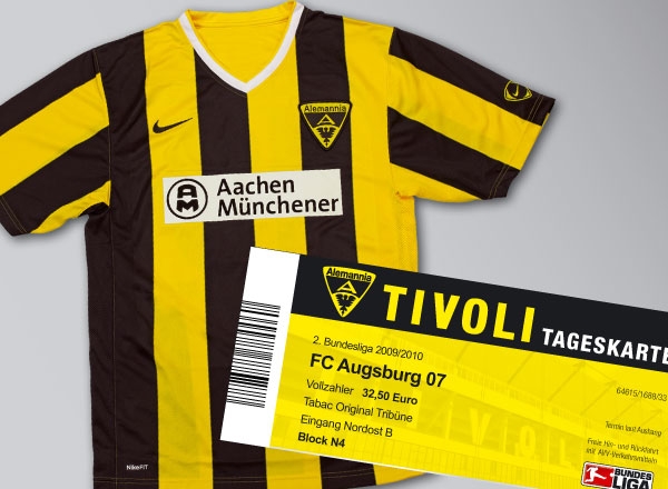 Bis zum 27. März 2010 bietet die Alemannia ihren Fans ein tolles Angebot. Ein Trikot nach Wahl plus ein Ticket für die Partie gegen den FC Augsburg (Sonntag, 28. März 2010, 13.30 Uhr) gibt es für nur 59,95 Euro statt 92,50 Euro. Das bedeutet eine satte Ersparnis von über 32 Euro.