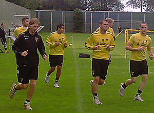 Im Individual- bzw. Lauftraining befinden sich Thomas Stehle und Tobias Feisthammel, die beide an einer Oberschenkelverhärtung laborieren. Dazu kommen Anouar Hadouir (Probleme mit der Hüftmuskulatur) und Fabian Bäcker (Außenbandzerrung im Knie). Shervin Radjabali-Fardi musste den Lehrgang der deutschen U20 absagen. Den Linksfuß plagt ein Bluterguss an der Gesäßmuskulatur, weshalb er ebenfalls nicht am Mannschaftstraining teilnehmen kann.