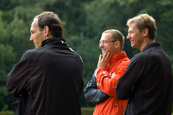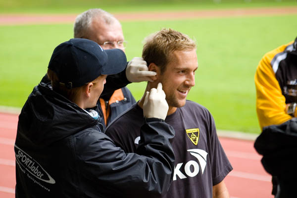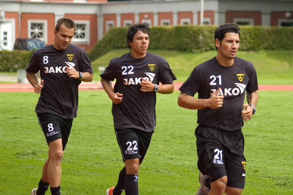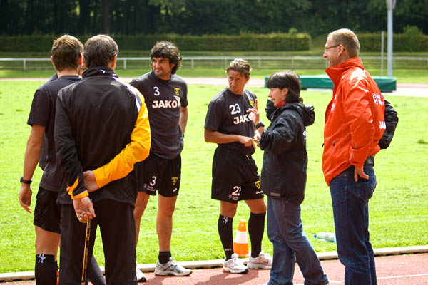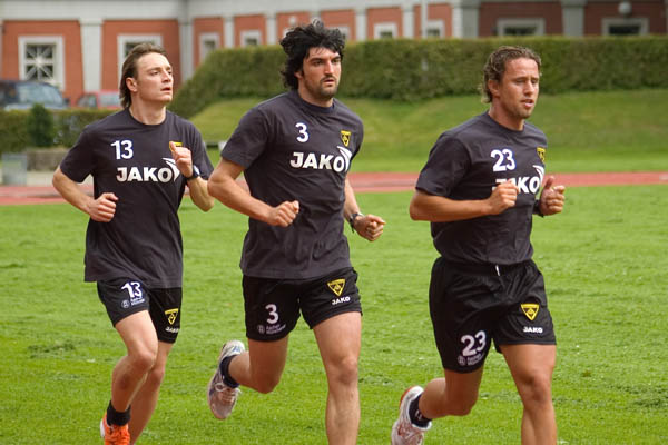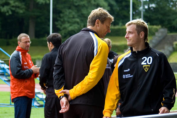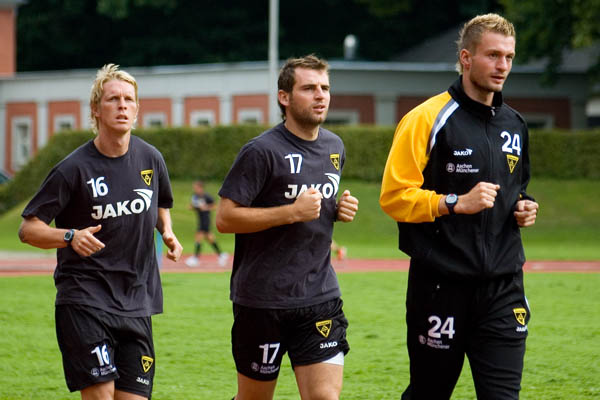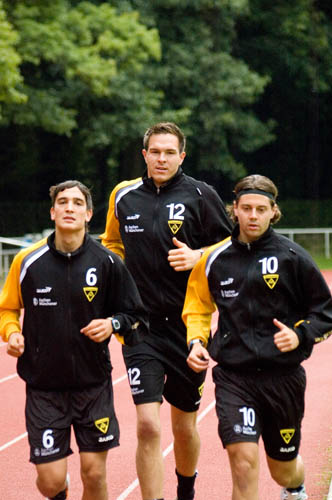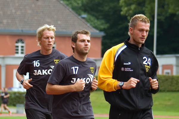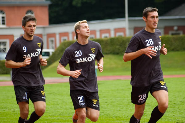„Alle haben ihr Programm durchgezogen“, sagte Coach Guido Buchwald mit Blick auf den Laktattest im Waldstadion am Vormittag. Die gewonnenen individuellen Fitnesswerte, die noch am Abend vorliegen werden, dienen als Grundlage zur Steuerung der Belastung im Westerwald. „Dort wollen wir uns die notwendige Basiskondition erarbeiten. Nach unserer Rückkehr arbeiten wir dann im technisch-taktischen Bereich weiter“, erklärte Buchwald. In Höhr-Grenzhausen, wo die Alemannia-Profis schon vor der Aufstiegssaison im Sommer 2005 unzählige Kilometer abspulten, weilt das Team bis Donnerstag. Am Mittwoch, 4. Juli, treffen die Schwarz-Gelben im ersten Test der Saison auf den Bezirksligisten Sportfreunde Höhr-Grenzhausen. Anstoß ist um 19 Uhr auf der Sportanlage „Auf dem Flürchen“.
