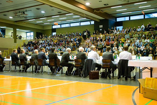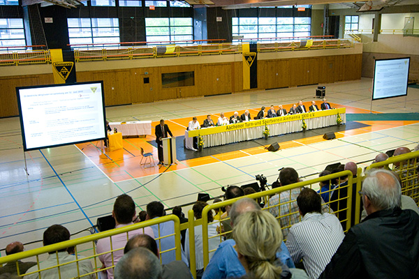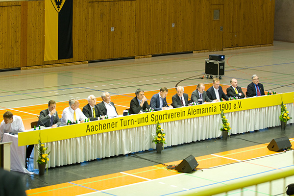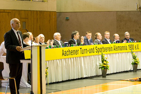 Es folgten die Berichte der Abteilungen Jugendfußball, Frauenfußball, Leichtathletik, Tischtennis und Volleyball. Angesichts deren zahlreicher Erfolgsmeldungen sowohl bei der Nachwuchsarbeit als auch im Leistungsbereich begann Nachtsheim seinen Bericht: "Der Verein lebt, liebe Mitglieder!" Derer zählt die Alemannia im Juni 2010 knapp 9200, stärkste Abteilung ist der Fußball mit 7634 Mitgliedern. Satzungsfeinschliff, Schulkooperationen, die verbesserte Kommunikation auf allen Ebenen - Nachtsheim fasste zusammen, was das neue Präsidium seit November 2009 angeschoben hat. "Die Alemannia-Familie ist enger zusammengerückt, diese Krise bietet uns auch eine große Chance", kam Nachtsheim auf die finanzielle Lage zu sprechen und versprach mehr Transparenz.
