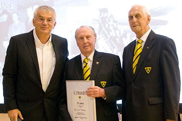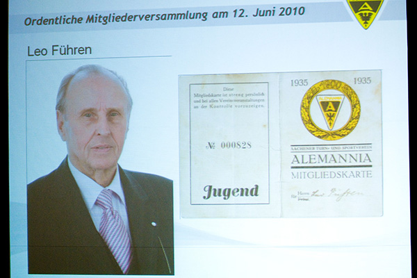 Dann übernahm Präsident Dr. Alfred Nachtsheim, denn Führen selbst wurde ebenfalls für 75 Jahre Mitgliedschaft bei der Alemannia ausgezeichnet. Führen erhielt Stehende Ovationen. "Bei Ihrer Vita blieb mir die Spucke weg. Ich ziehe meinen Hut vor Ihnen. Wir hoffen, dass Sie noch viel für uns leisten werden", sagte Nachtsheim.