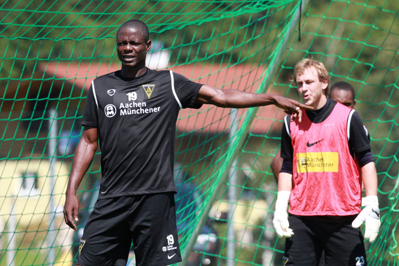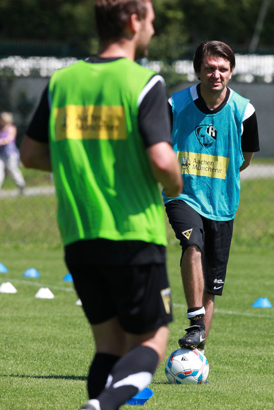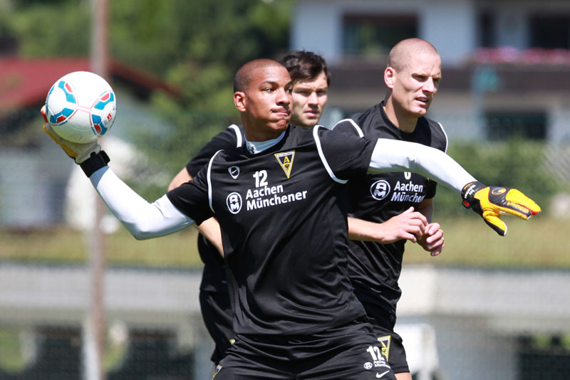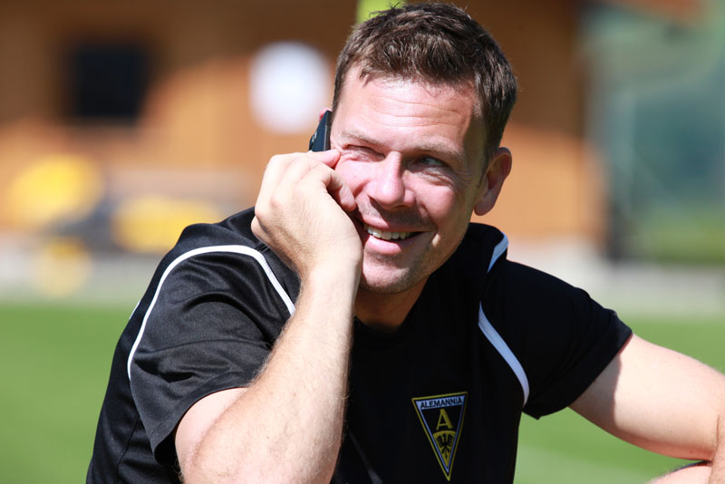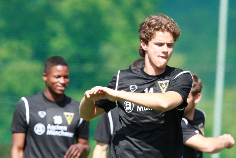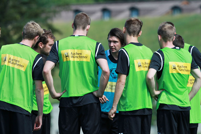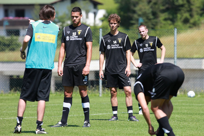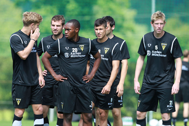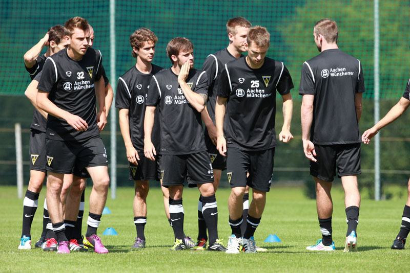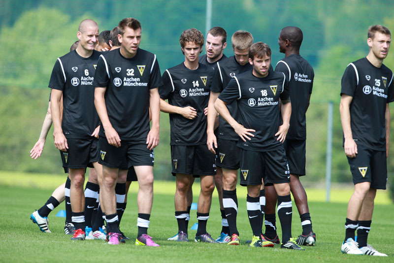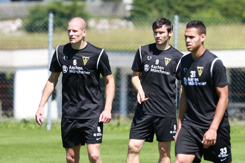 Rund um das Trainingsfeld der Alemannia wurden am Dienstagmorgen nicht nur die Übungen der Schwarz-Gelben verfolgt. Am Walchsee gingen die Details des neuen Spielplans, der parallel in Frankfurt verkündet wurde, auf vielen Handys ein. „Wir müssen zuerst nach Aue“, rief Sportdirektor Erik Meijer irgendwann aufs Feld. Nach der Einheit wurden Trainer und Spieler dann schnell mit den Einzelheiten versorgt.