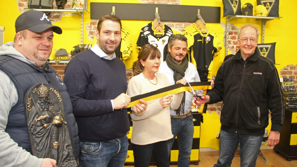 Mitten im Herzen der schönen Kaiserstadt ist heute ein neuer Alemannia-Fanshop eröffnet worden.