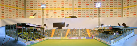 1112 Figuren sind im Modell bereits untergebracht. Ein besonderer Gast nimmt am Abend der Präsentation auf der Haupttribüne Platz: Die Sonderedition von Professor Dr. Horst Heinrichs wird vom Präsidenten eigenhändig auf seinen Stammplatz platziert. Dazu erhält er die erste ewig geltende Dauerkarte für den Minitivoli. „Ich fühle mich sehr geehrt“, verrät Heinrichs. Und zum Modell fehlen ihm glattweg die Worte. „Beeindruckend!“, kann er nur staunen. Auch die Spieler Alexander Klitzpera und Reiner Plaßhenrich sowie Trainer Dieter Hecking nehmen ihren Arbeitsplatz genau unter die Lupe und sind begeistert.