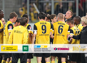 Mannschaft und Sponsoren laden zum Heimspiel gegen Düsseldorf ein. Unterstütze die Alemannia beim Kampf um den ersten Sieg der Saison.