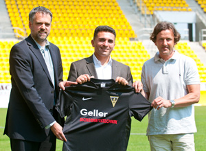 Die wohl wichtigste und zugleich auch jüngste Neuerung durfte bereits am vergangenen Freitag beim Saisonauftakt in Bielefeld auf der Brust der Spieler begutachtet werden. Denn mit der Geller Sicherheitstechnik GmbH hat die Alemannia für die kommenden zwei Jahre einen neuen Hauptsponsor gefunden, dessen Logo ab sofort auf den Trikots der Schwarz-Gelben nicht mehr zu übersehen ist. „Wir freuen uns sehr auf die gemeinsame Zusammenarbeit mit der Alemannia. Das ist eine tolle Herausforderung für uns“, betonte Babak Geller am Donnerstag im Rahmen der offiziellen Vorstellung des neuen Hauptsponsors.