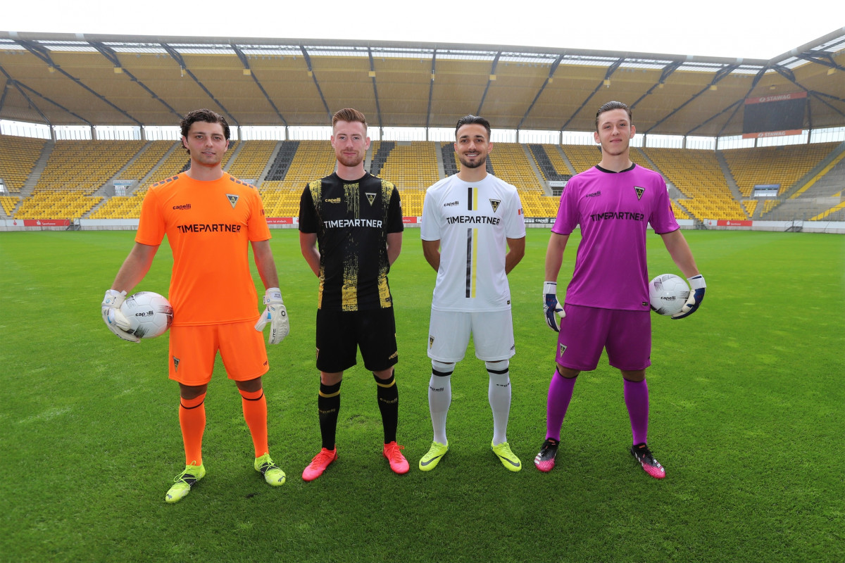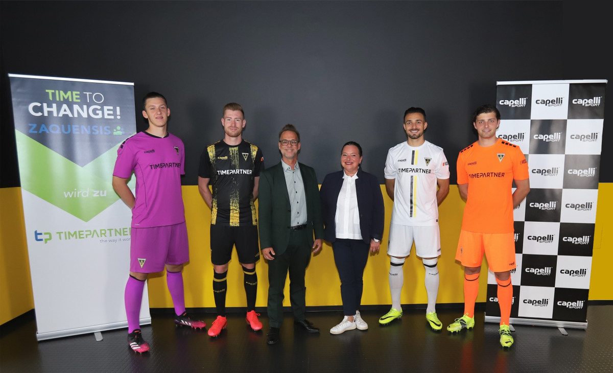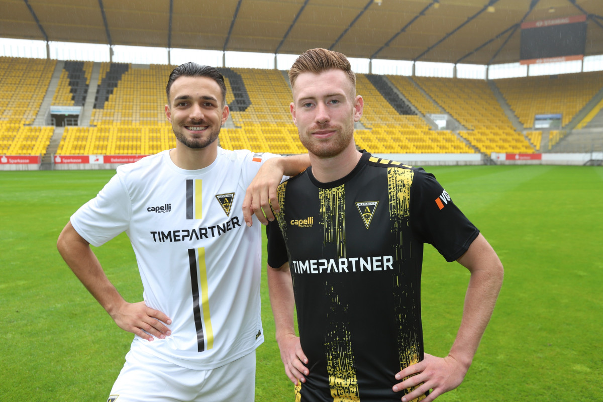 Alemannia Aachen hat gemeinsam mit dem neuen Hauptsponsor TIMEPARTNER das neue Heimtrikot, das Auswärtstrikot sowie die Torwarttrikots der Saison 2021/2022 präsentiert. Mit TIMEPARTNER auf der Brust läuft die Mannschaft in der kommenden Saison im schwarz-gelben Heimtrikot oder im weißen Auswärtstrikot unseres neuen Ausrüsters CAPELLI auf. Wie bereits in der vergangenen Saison wird VOSS IT auf dem Ärmel zu sehen sein.